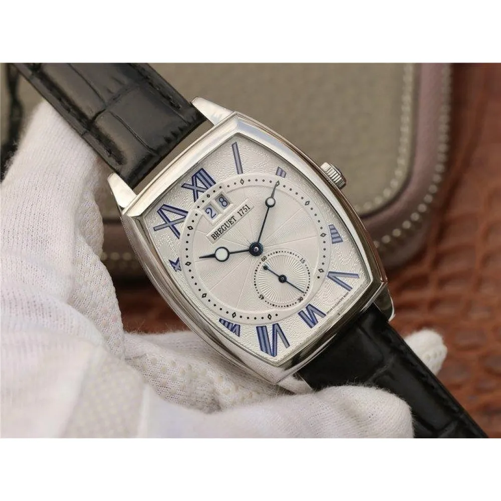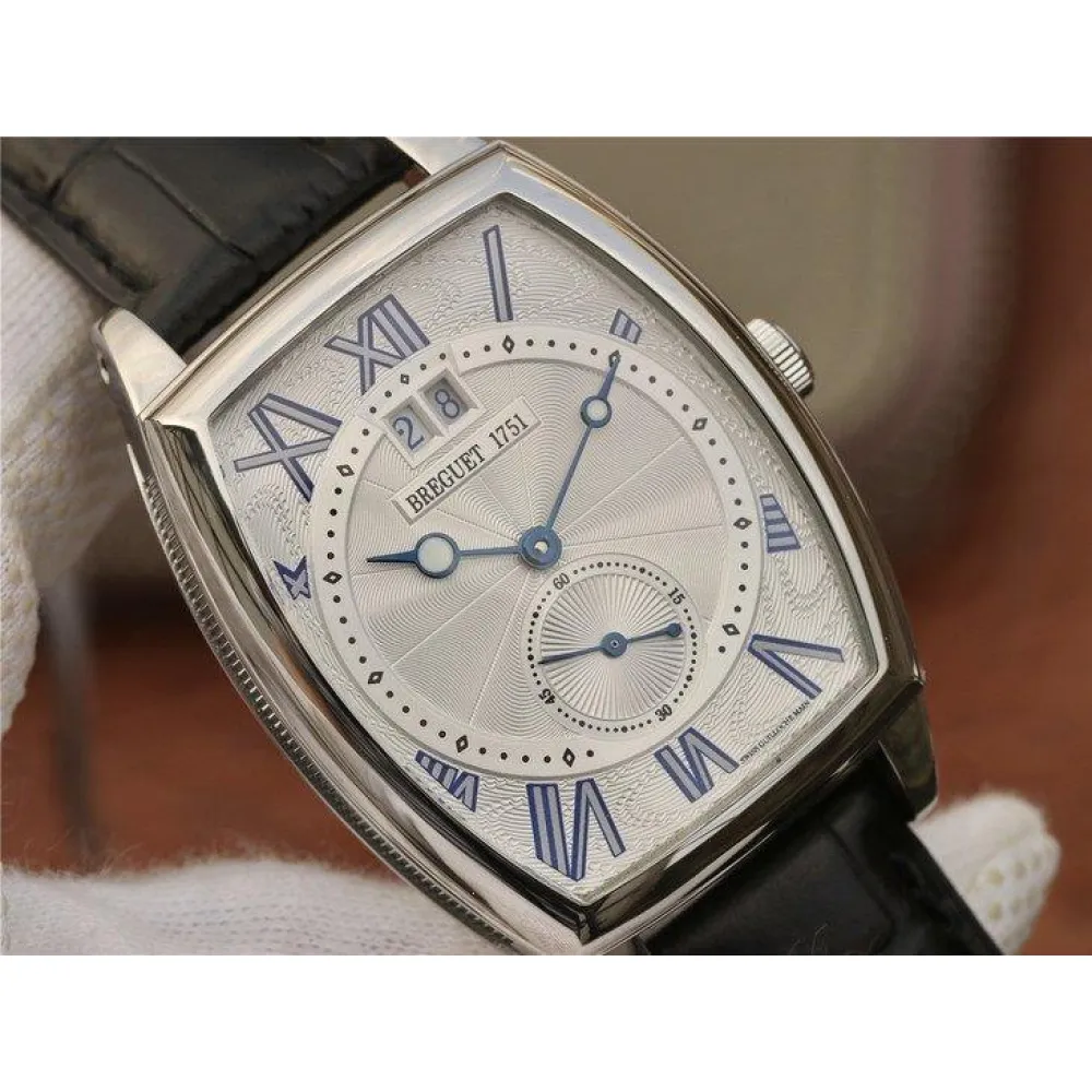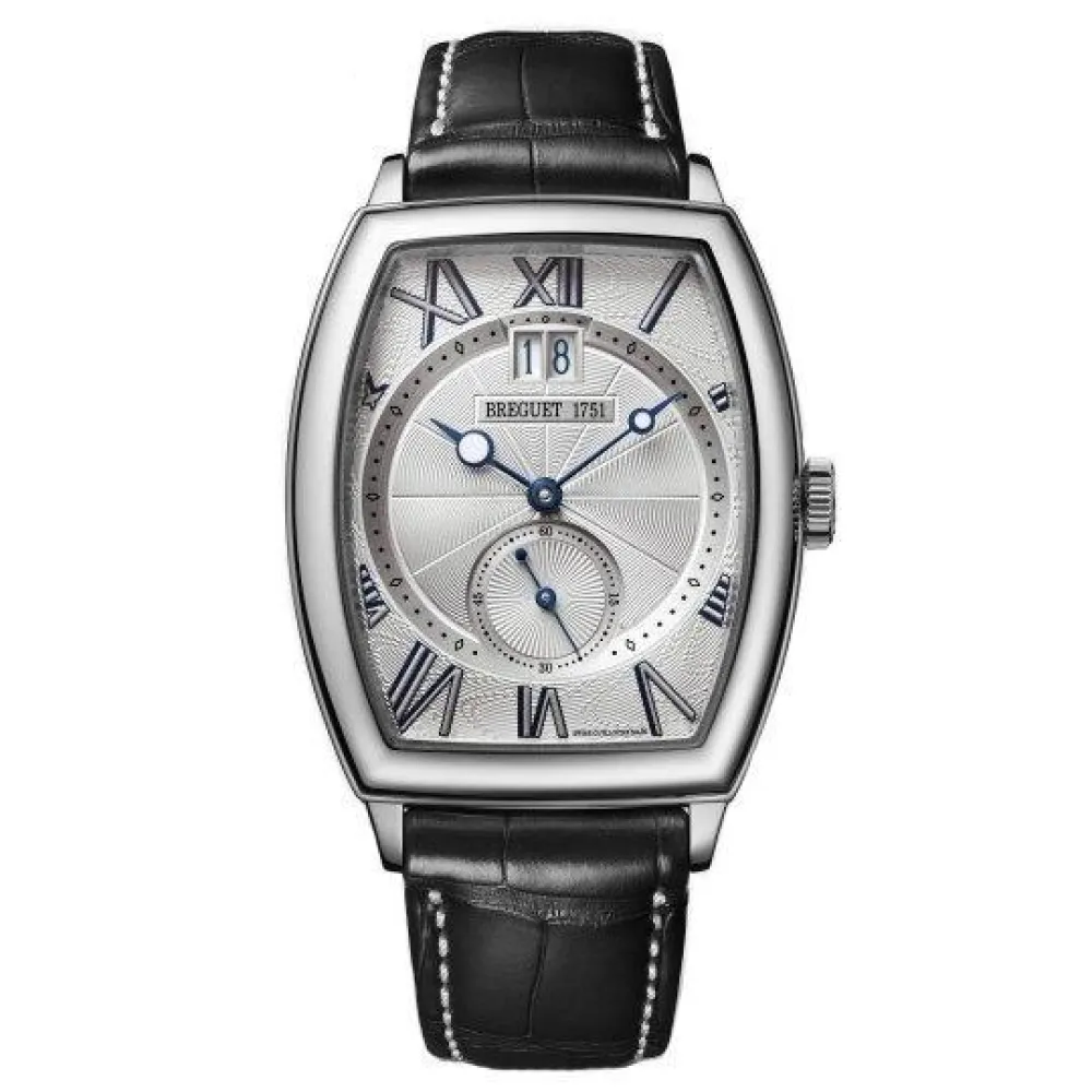 Посеребренный, гильошированный. Секундная стрелка в позиции 6 часов, большая дата в позиции 12 часов.