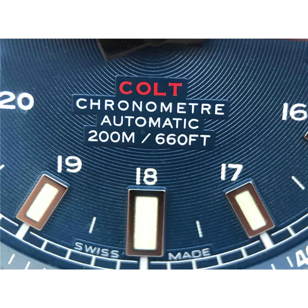 Синий, с круговым гильошированием по всему радиусу. Полированные часовые риски и стрелки, покрытые люминесцентным составом Super LumiNova С1. Окно даты, расположенное в отметке на 15.00 часов.