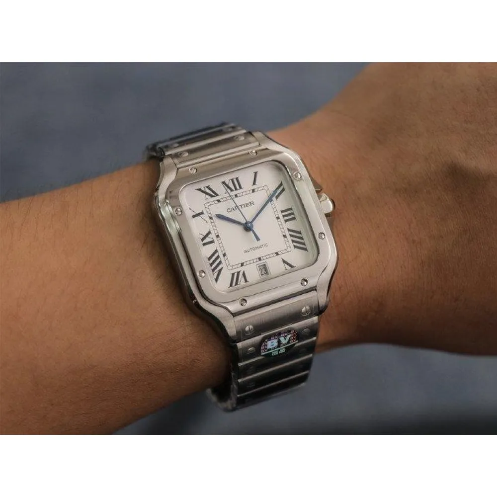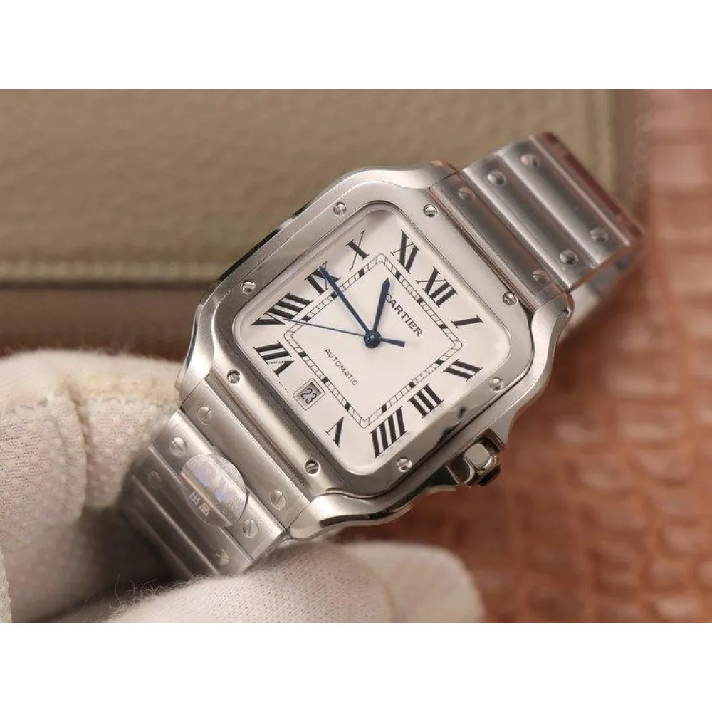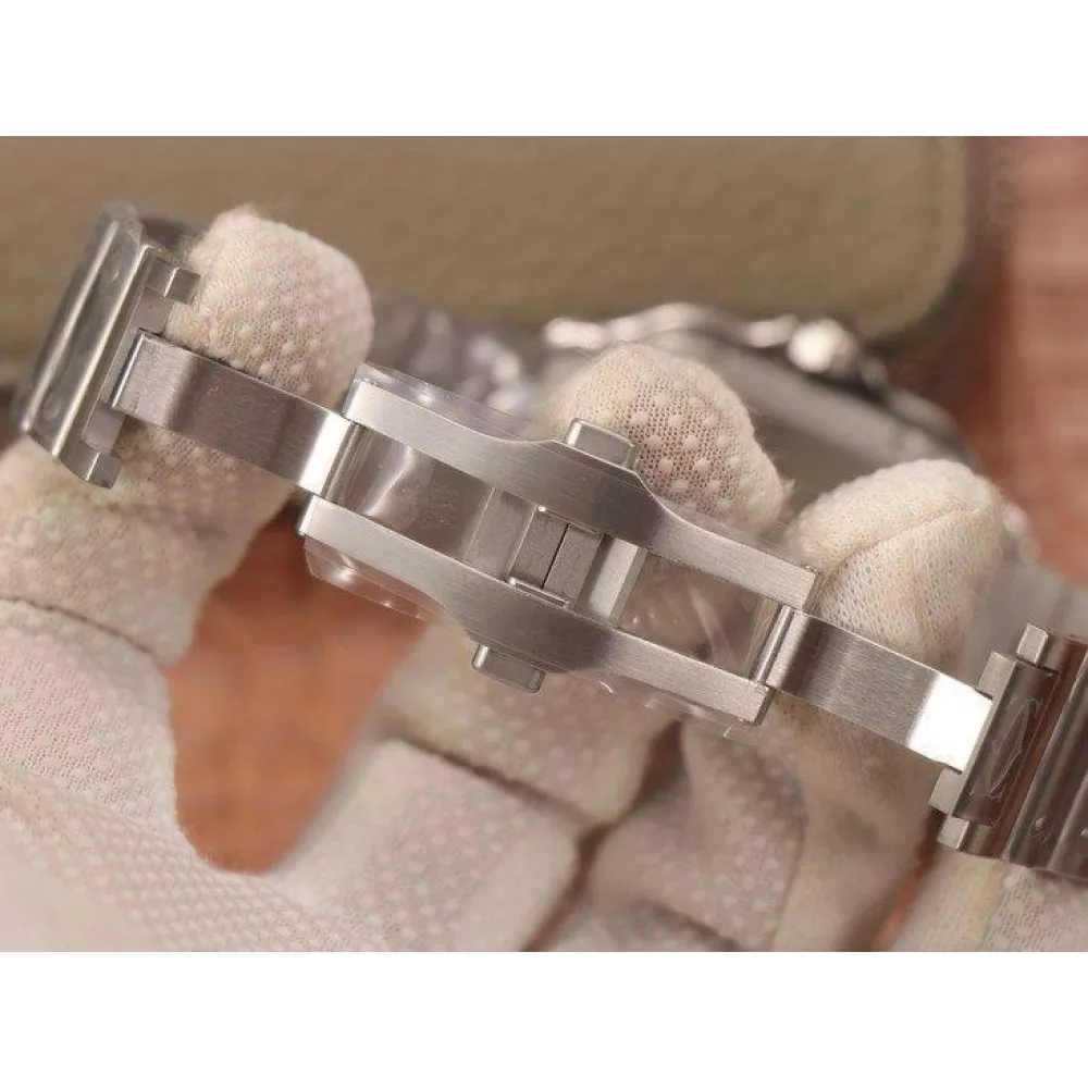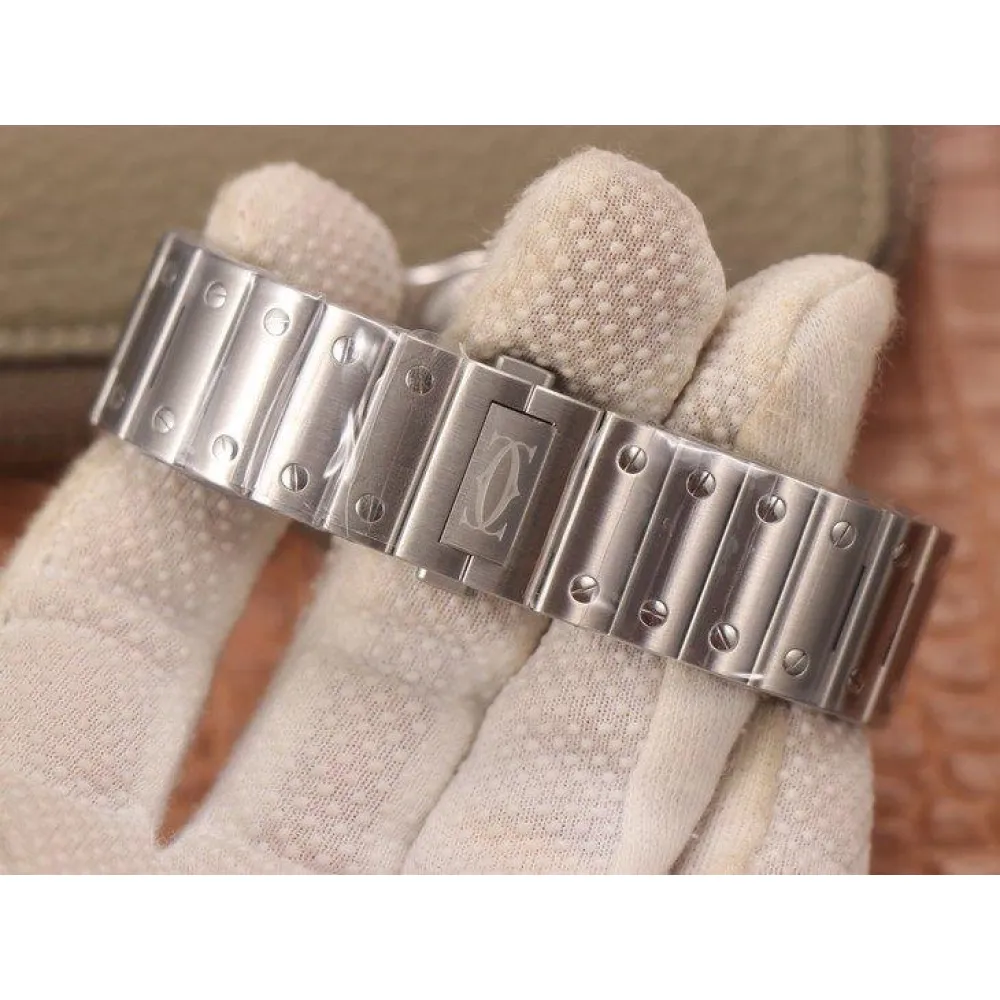 Стальной браслет из сатинированной стали с двойной раскладывающейся застежкой Cartier. Либо черный кожаный ремешок, с двойной раскладывающейся застежкой Cartier.