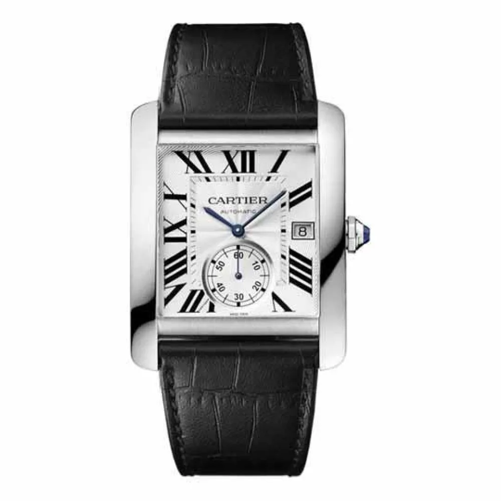 Черный кожаный ремешок, с двойной раскладывающейся застежкой Cartier.