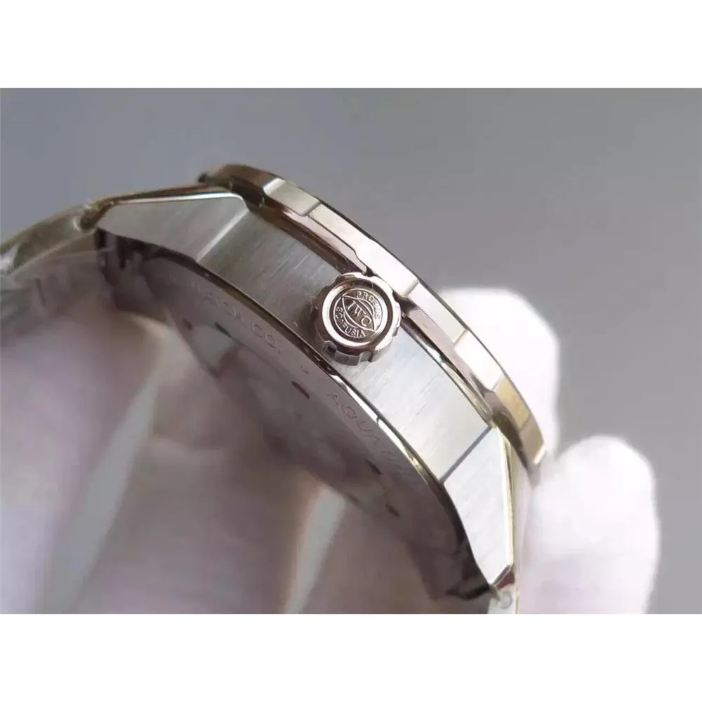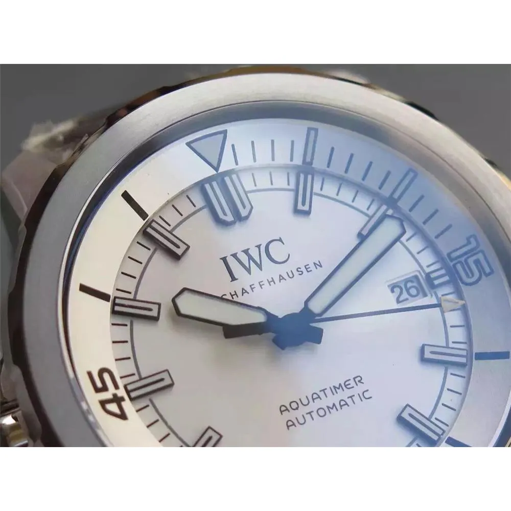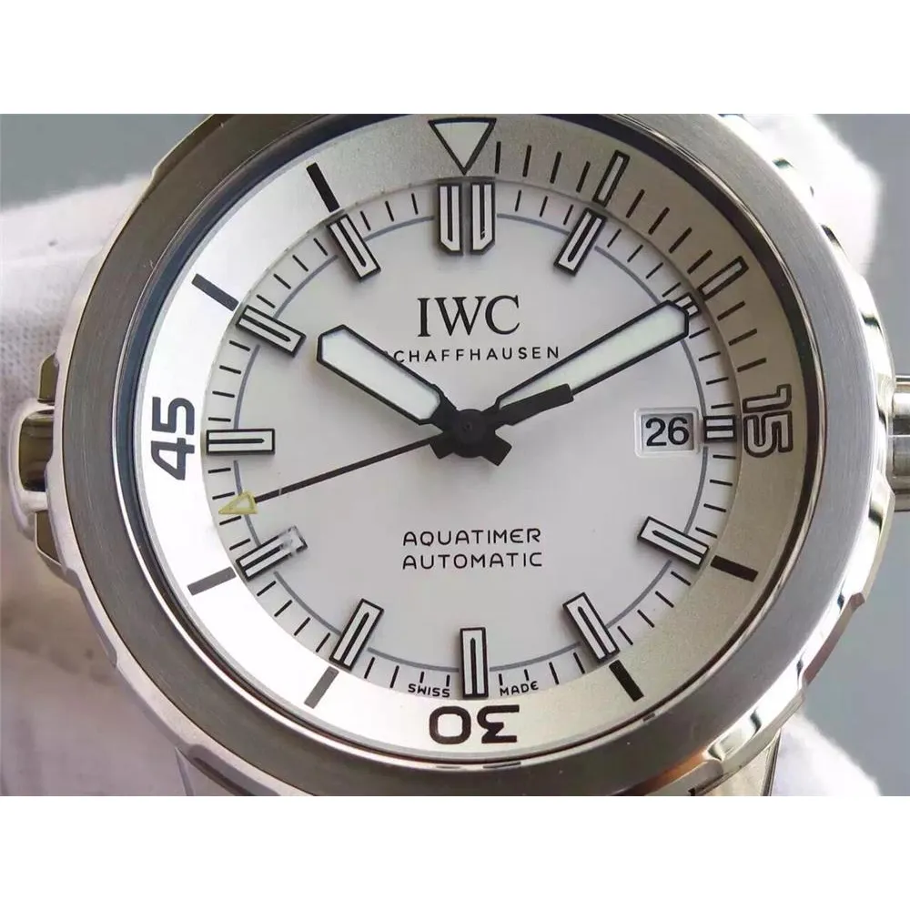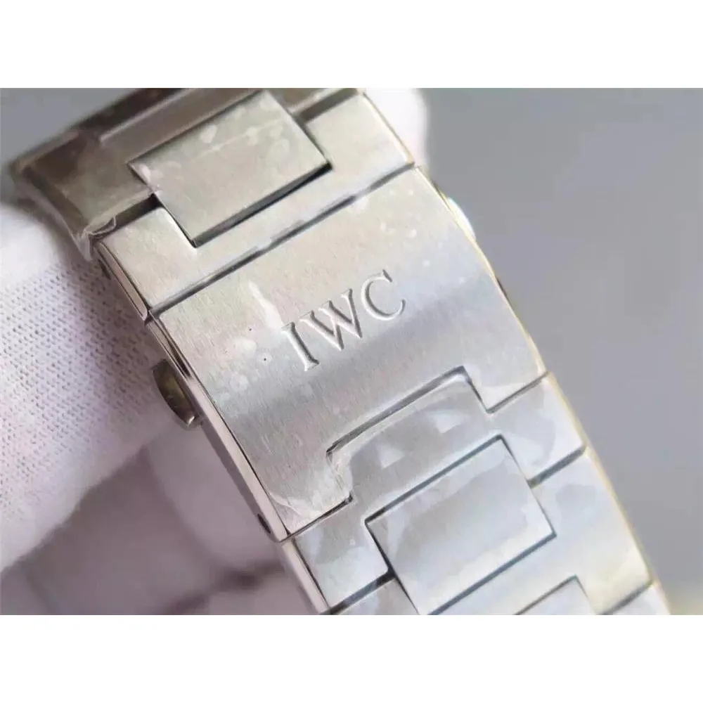 Стальной браслет из сатинированной стали 316L, с двойной раскладывающейся застежкой IWC и системой быстрого укорачивания браслета. Либо черный каучуковый ремешок IWC Aquatimer.