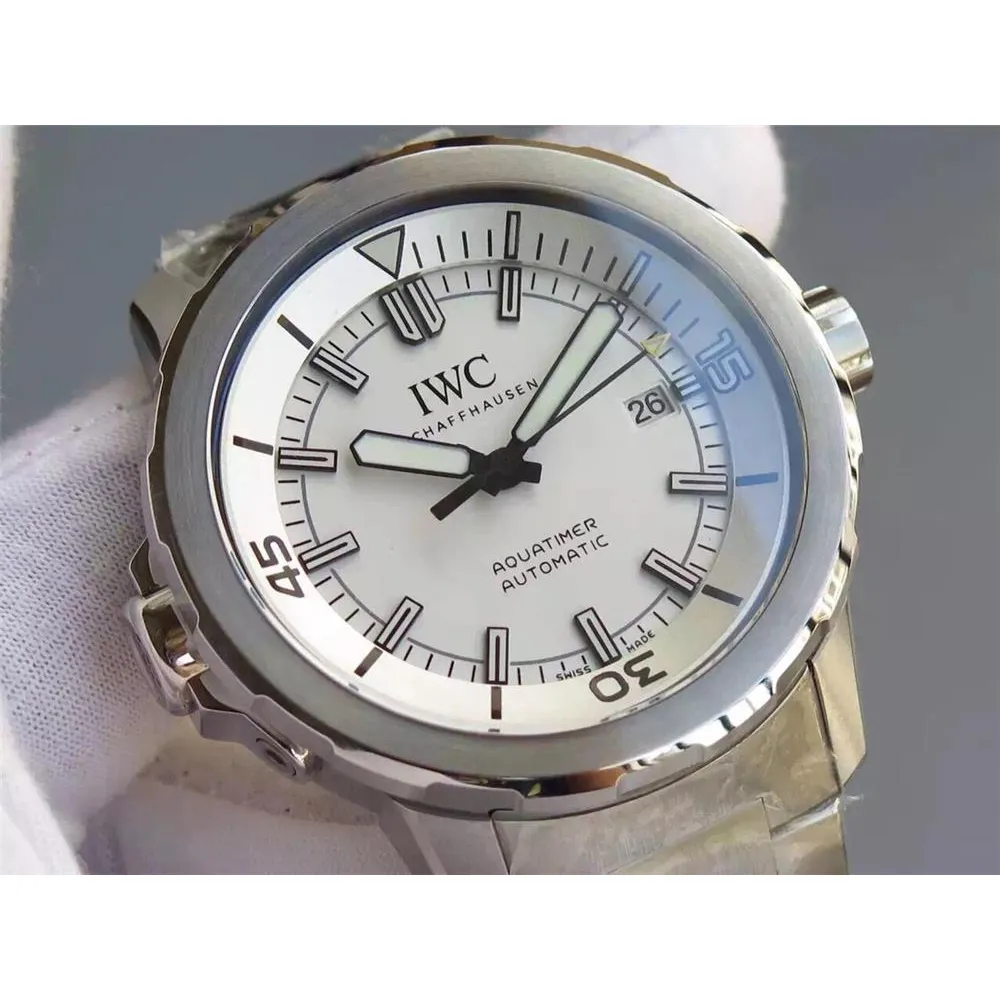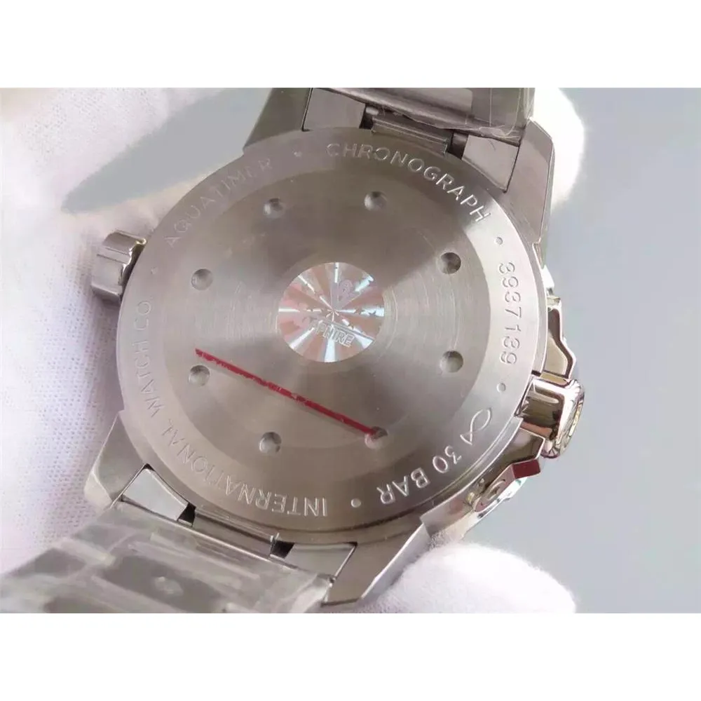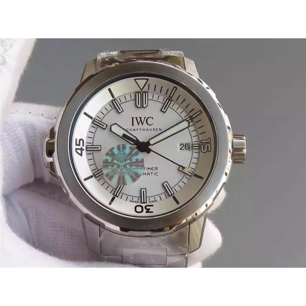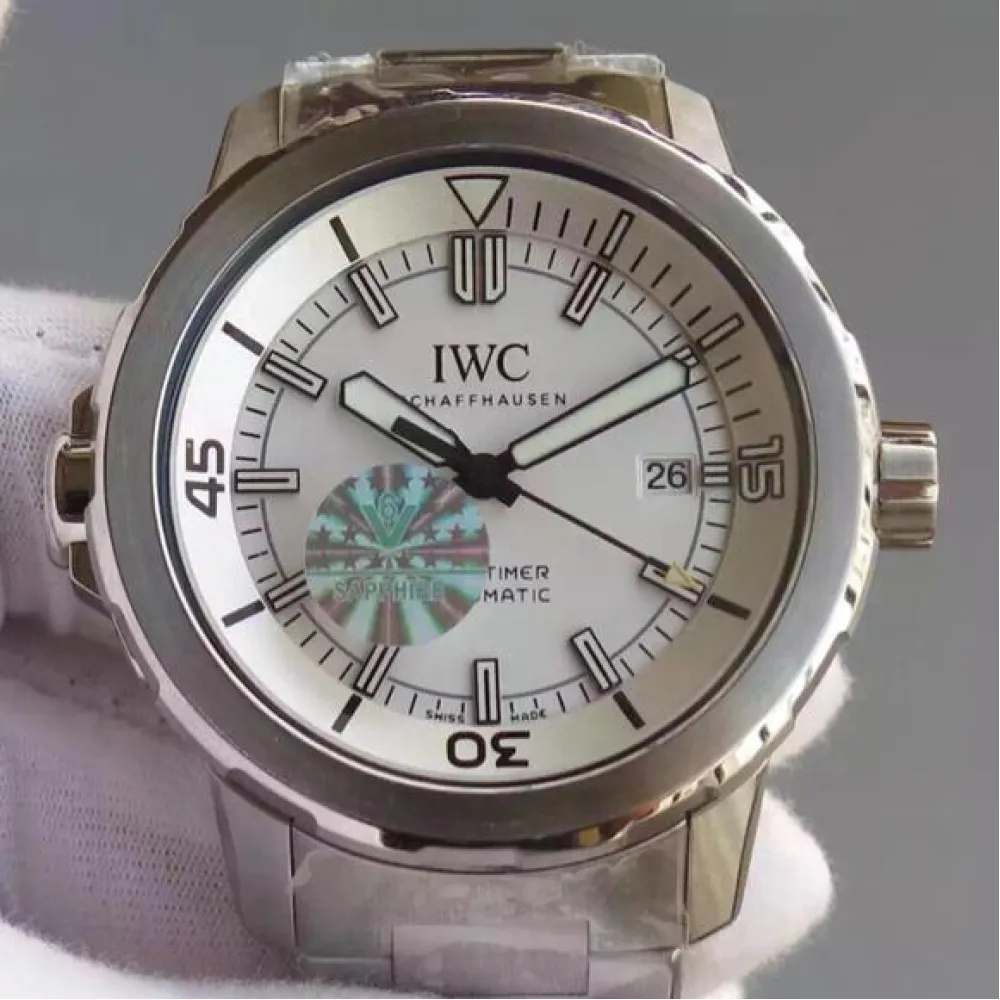 Стальной браслет из сатинированной стали 316L, с двойной раскладывающейся застежкой IWC и системой быстрого укорачивания браслета. Либо черный каучуковый ремешок IWC Aquatimer.