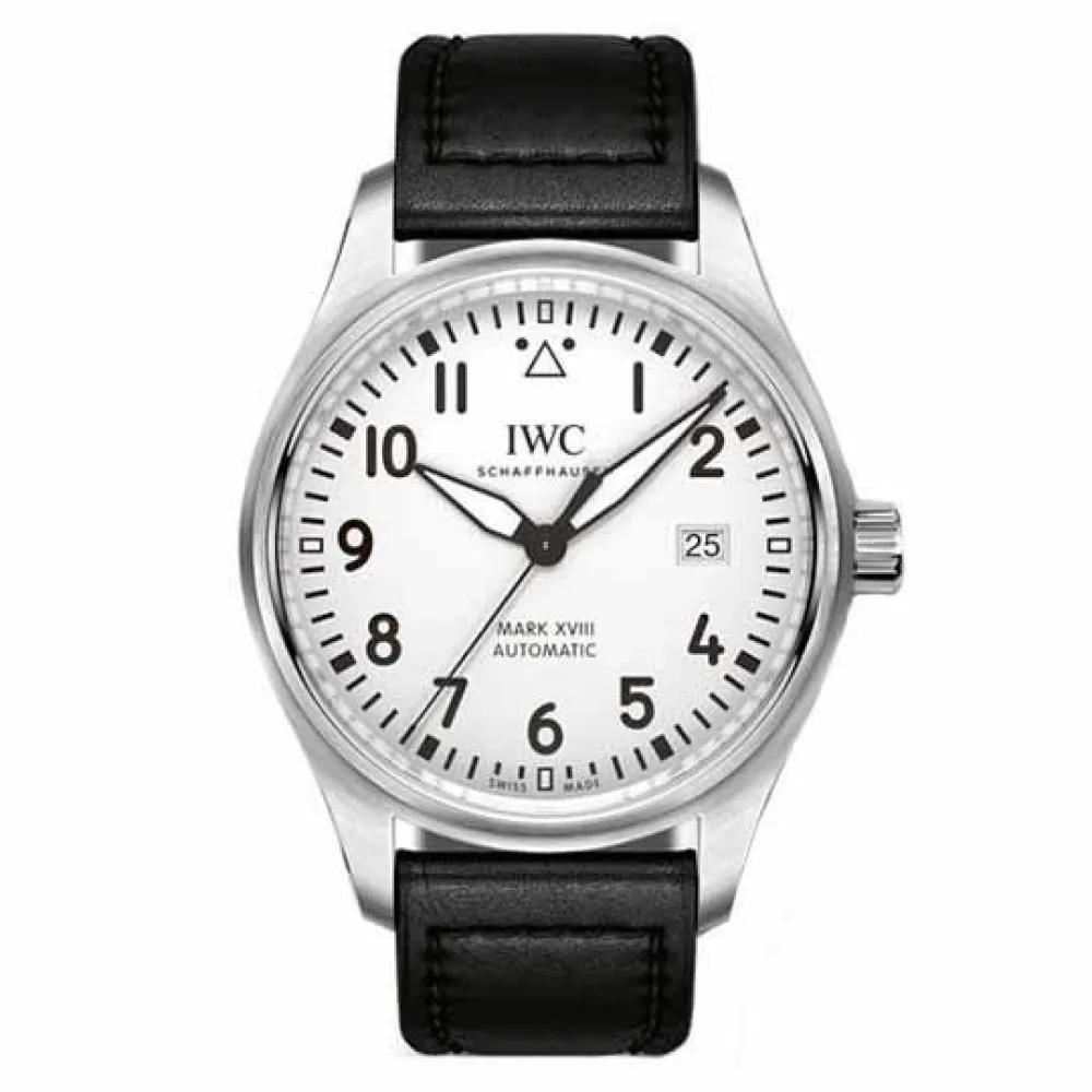 Черный кожаный ремешок, с простой (с помощью шипа) застежкой IWC. Либо стальной браслет из сатинированной стали, с двойной раскладывающейся застежкой IWC.