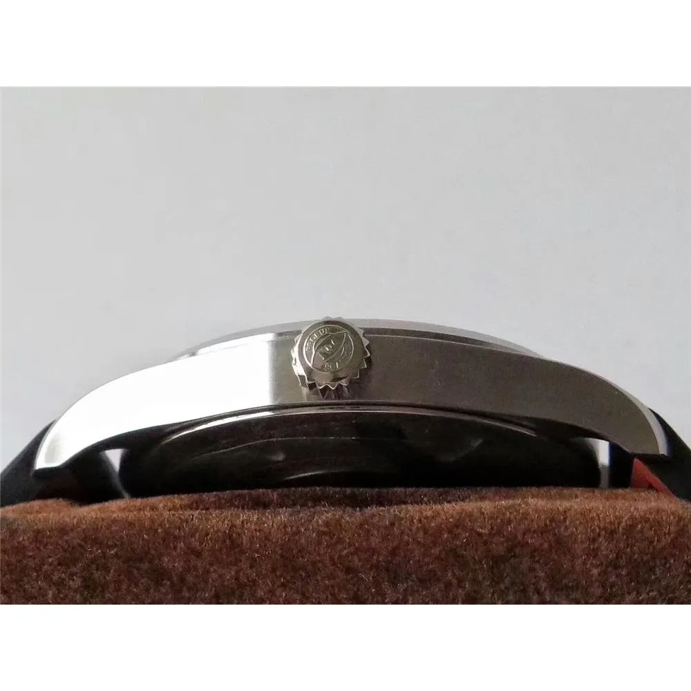 Белый, матовый. Часовые риски и черные мечевидные стрелки, покрытые люминесцентным составом Super LumiNova С1, зеленого свечения. Окно даты, расположенное в отметке на 15.00 часов.