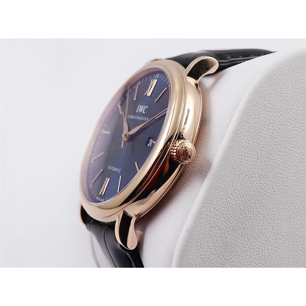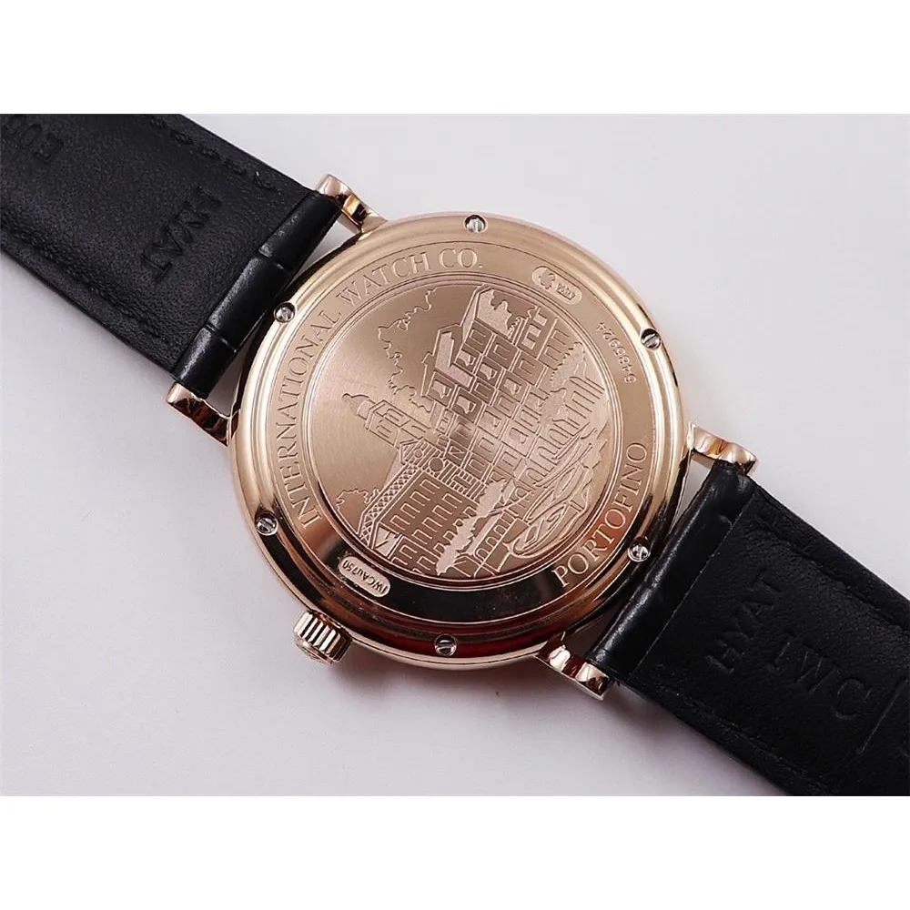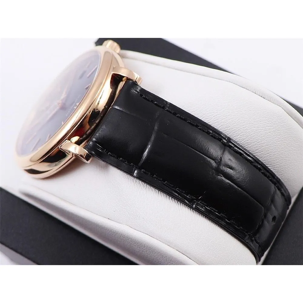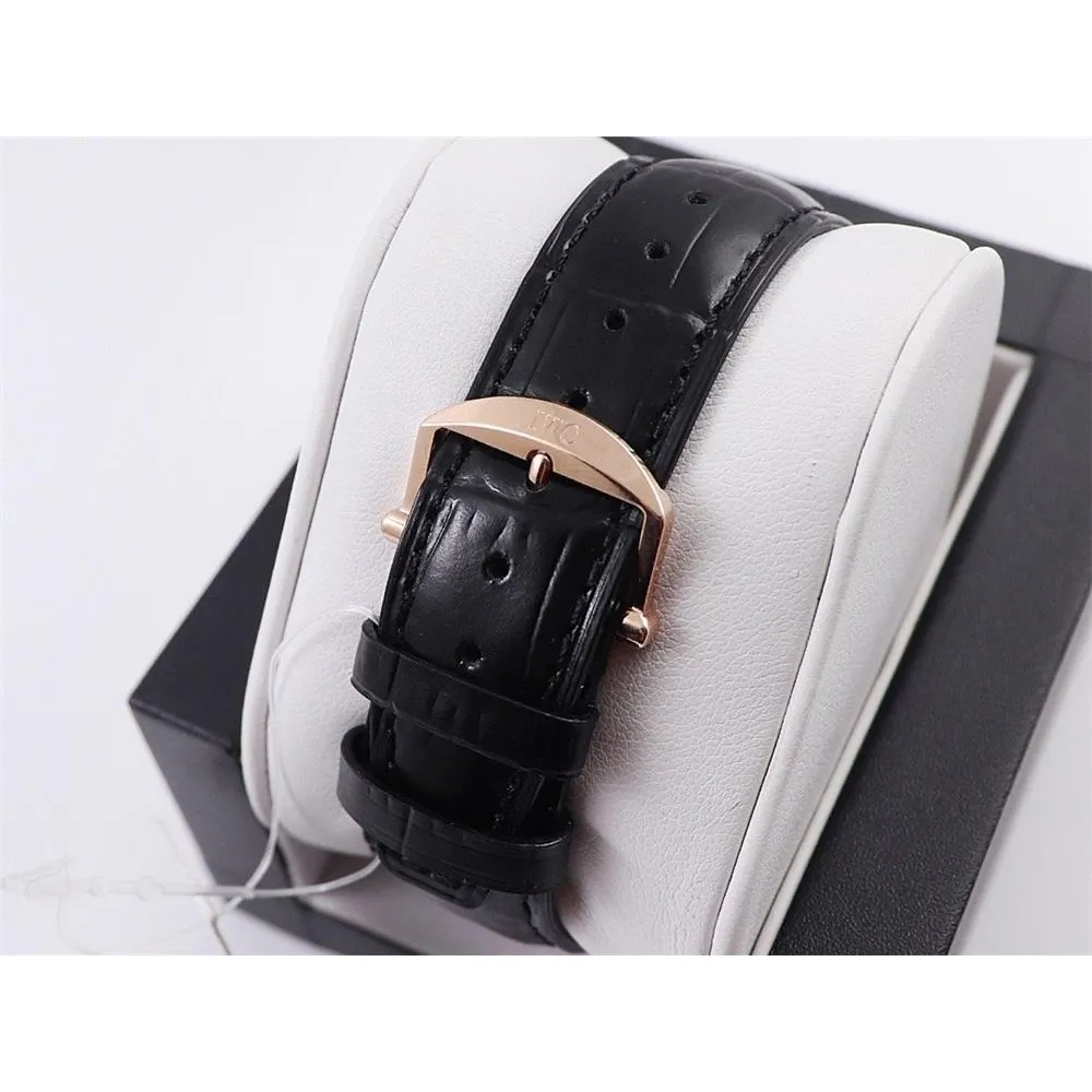 Чёрный кожаный ремешок из натуральной кожи крокодила, с двойной раскладывающейся застежкой IWC Portofino. Либо стальной браслет миланского плетения..