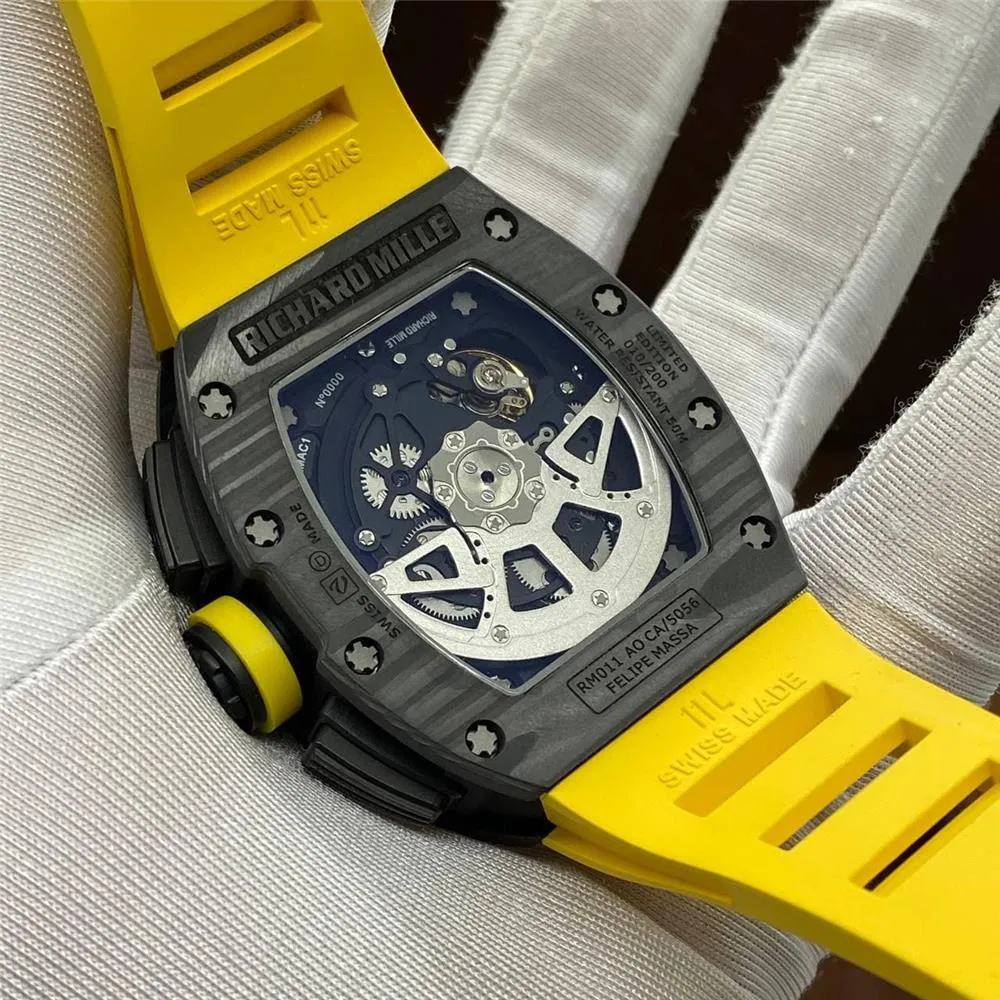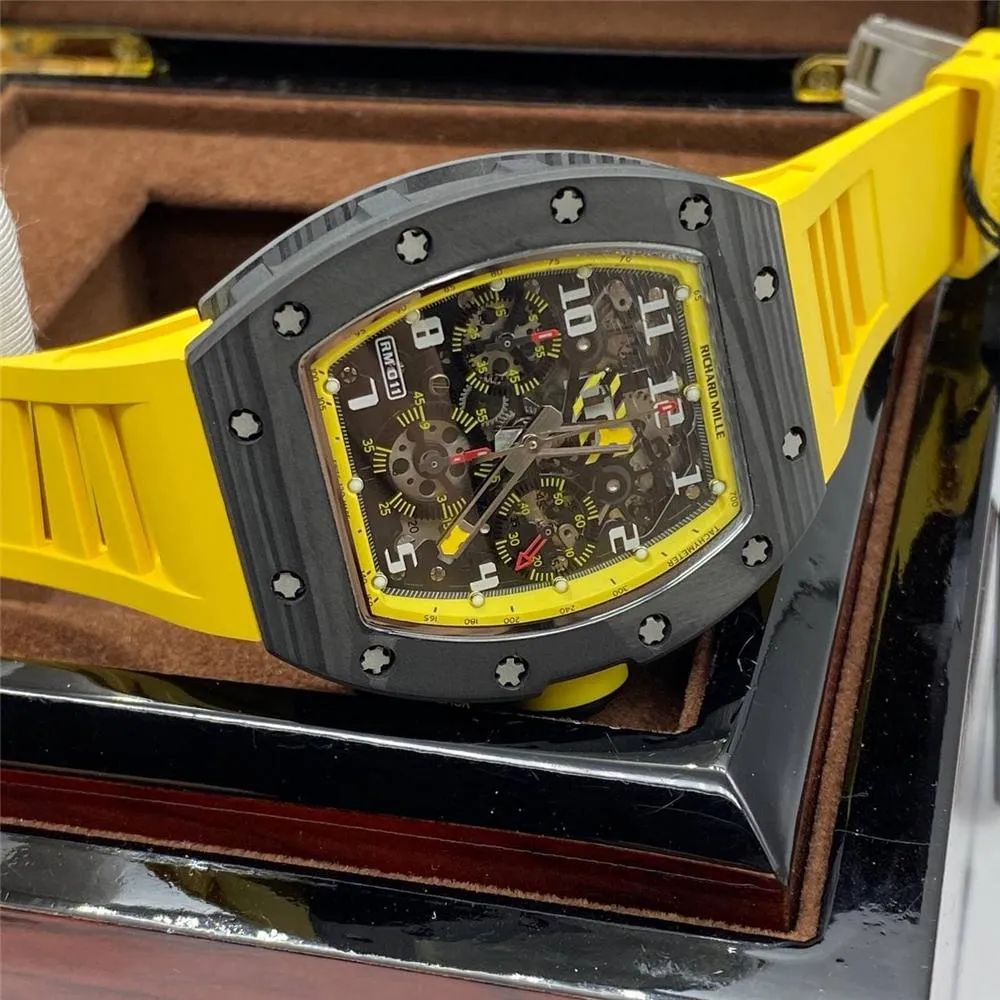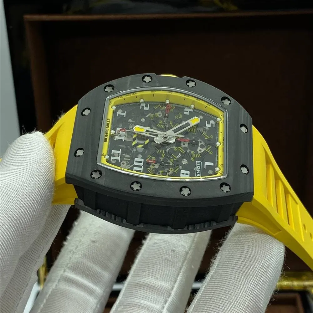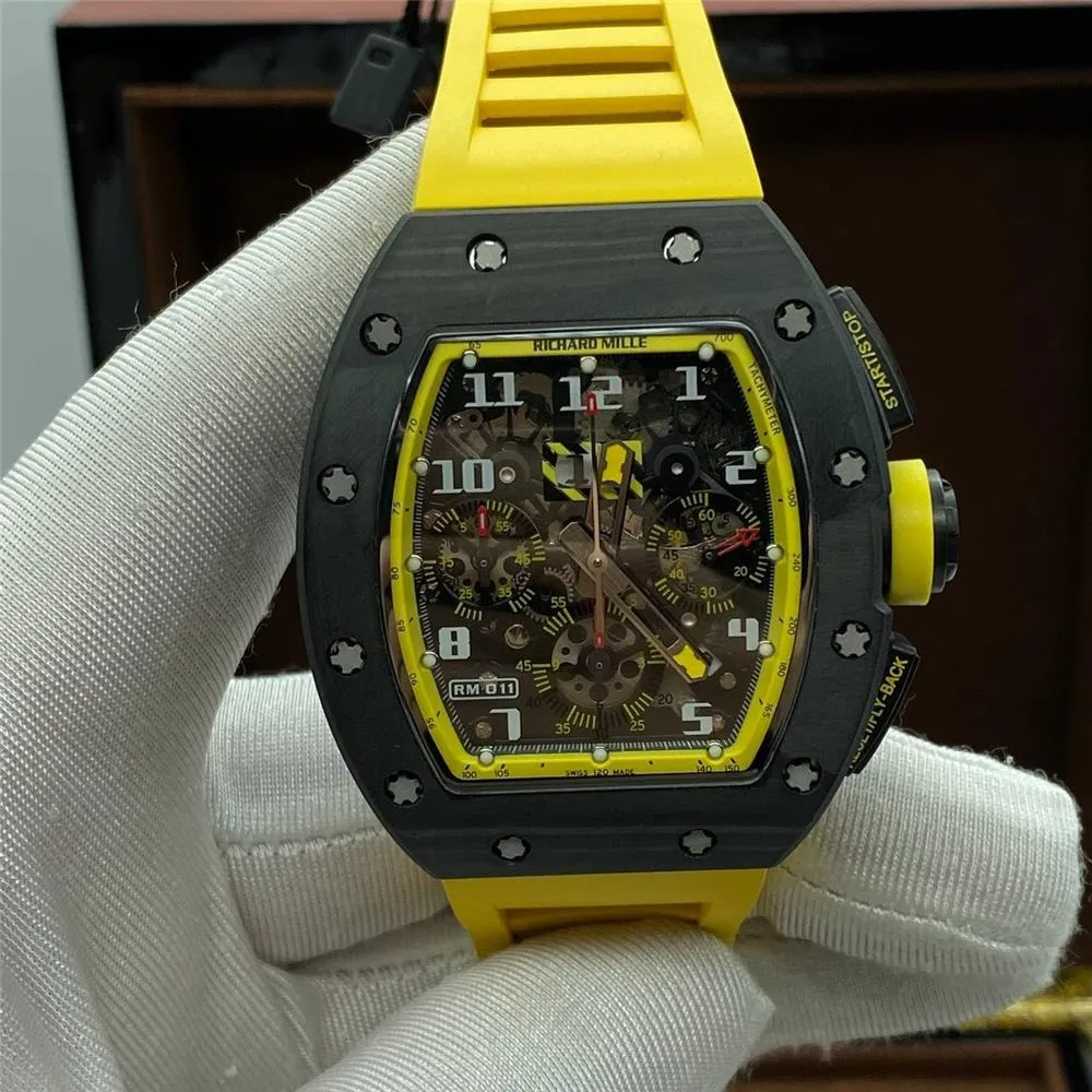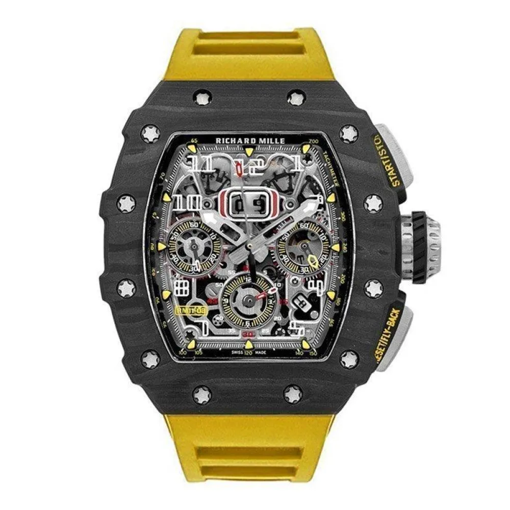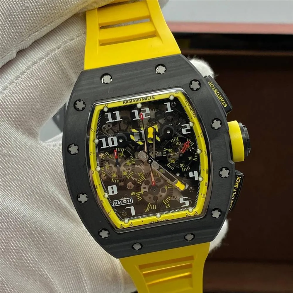 Часы Richard Mille RM 011 Automatic Flyback Chronograph Carbon on Yellow Rubber Strap 310212
