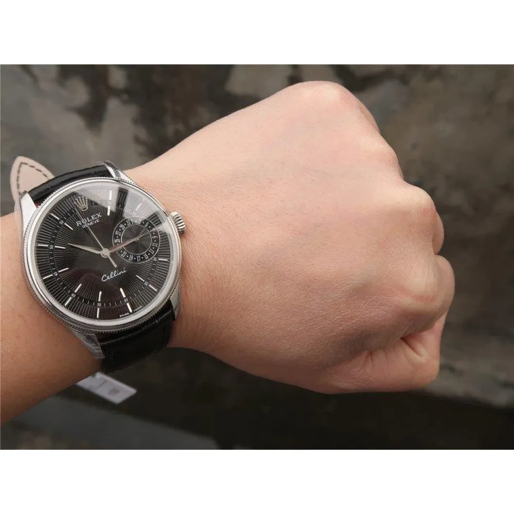 Чёрный, матовый. Полированные часовые риски по радиусу циферблата и классические мечевидные стрелки. Разграниченная минутная шкала на нижнем уровне циферблата. Гравировка маркировки Rolex и серийного номера Rolex на внутреннем