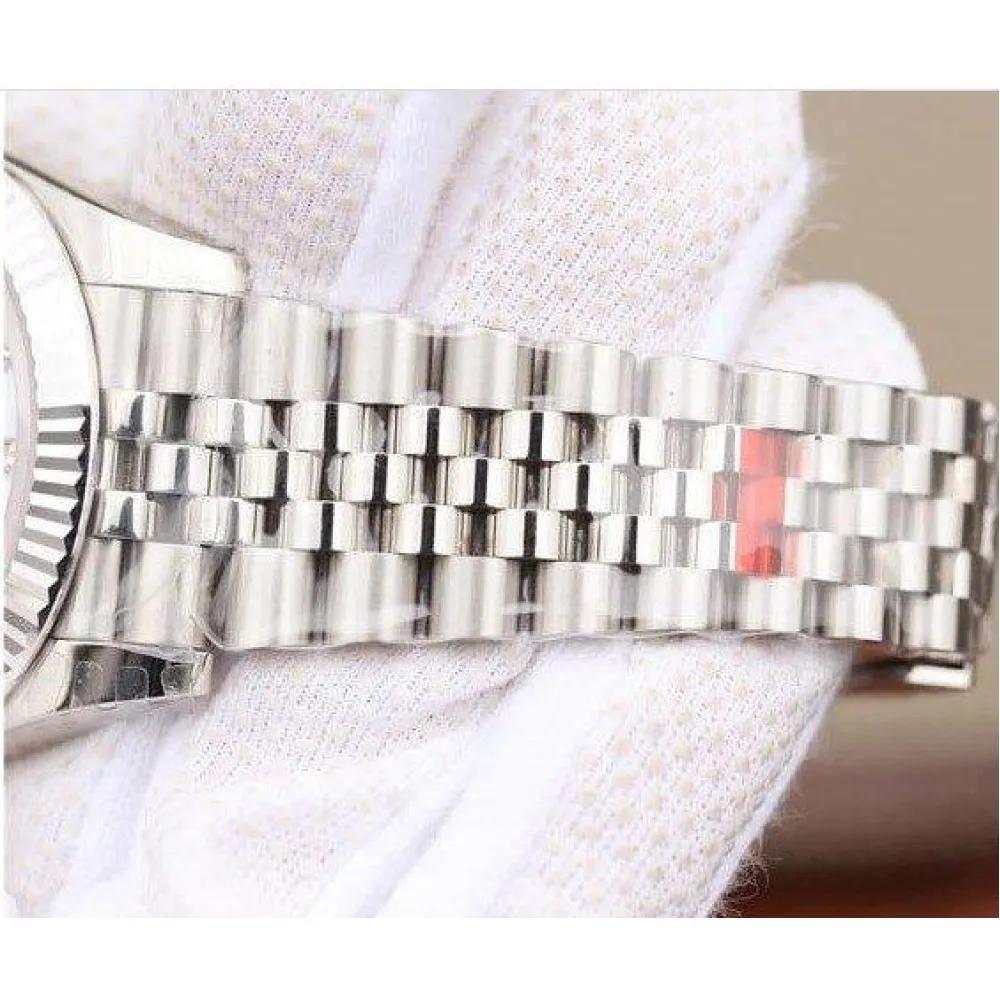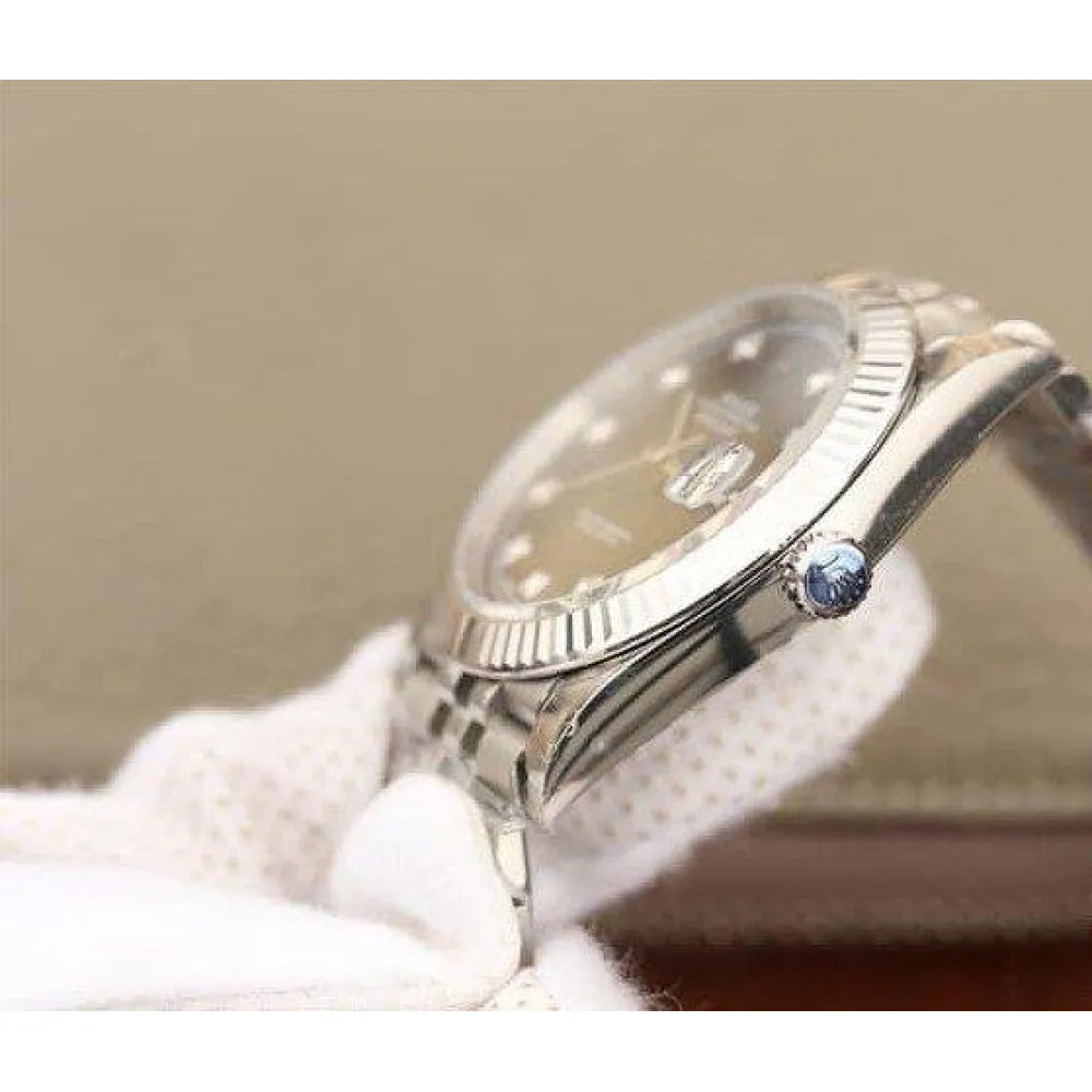 Полированная сталь AISI 904L. Стальной безель, покрытый белым золотом.