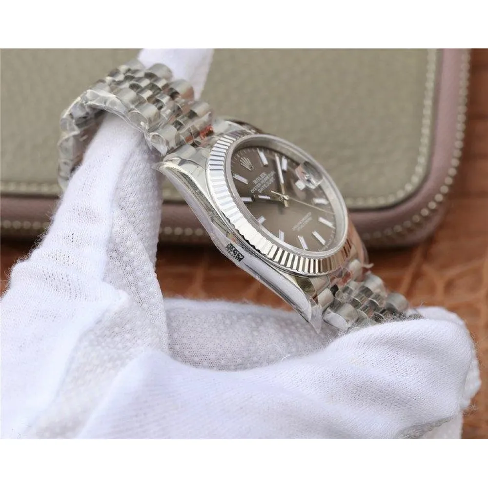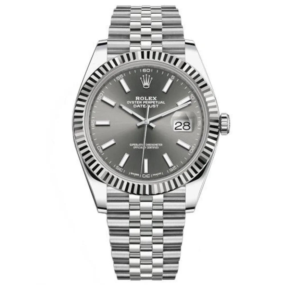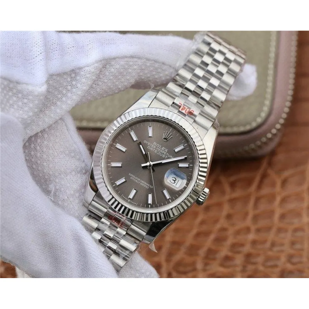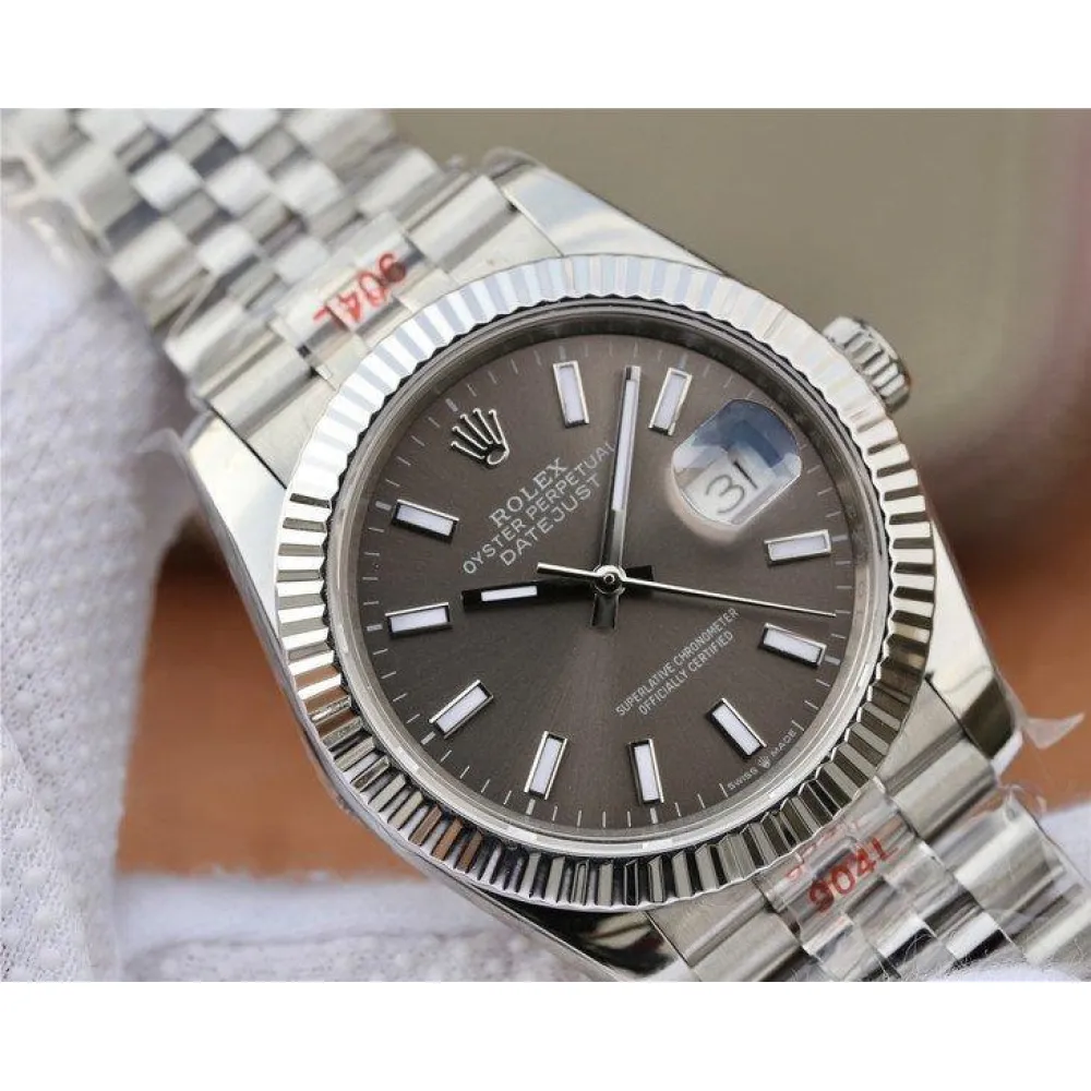 Серый, переливающийся. Часовые риски и полированные стрелки, покрытые люминесцентным составом Super LumiNova С3. Окно даты в отметке на 15.00 часов под увеличительным окном 2,5. Гравировка маркировки Rolex и серийного номера Rolex на внутреннем ранте.