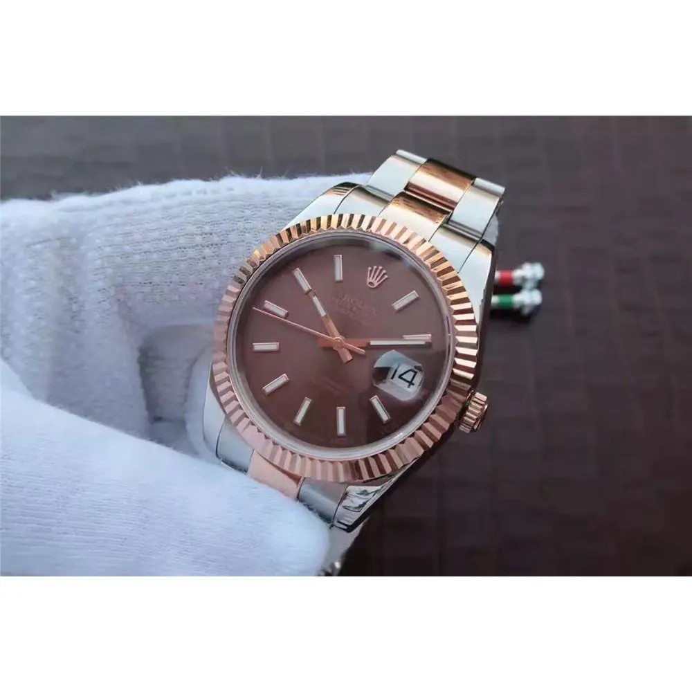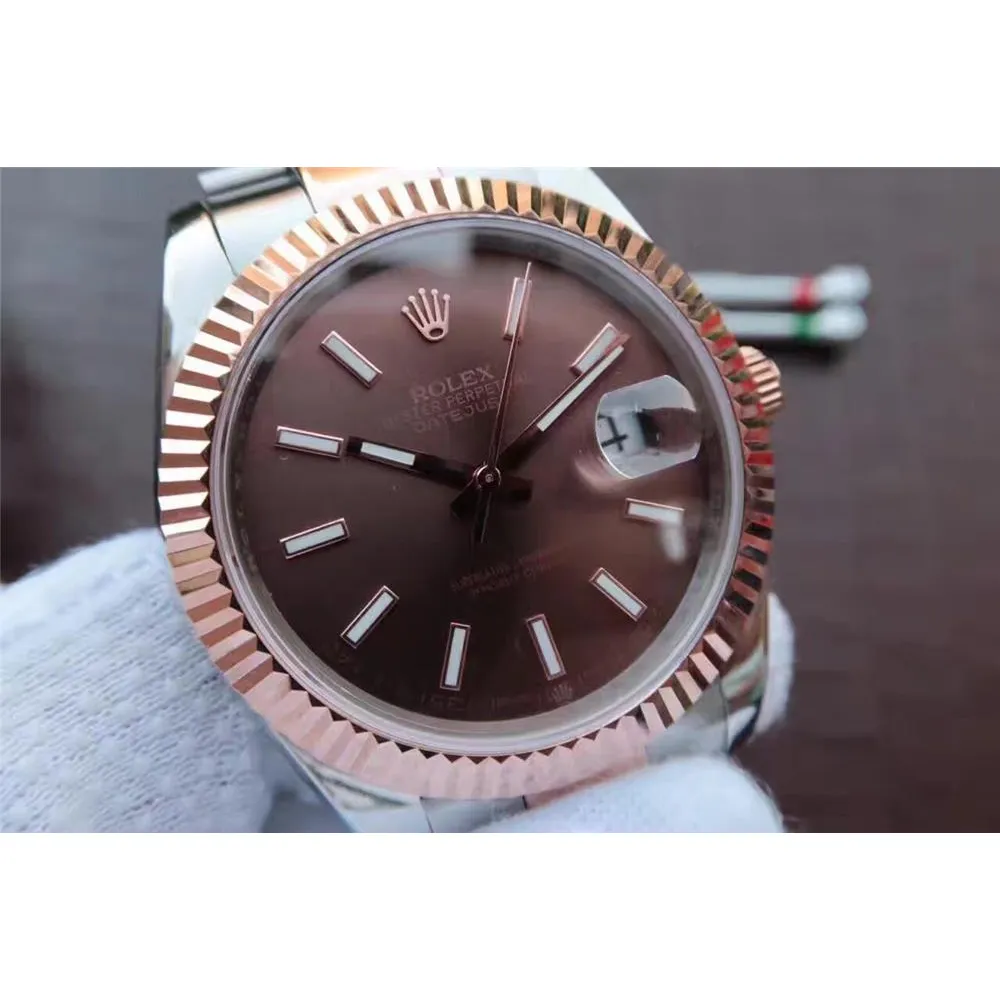 Коричневый, переливающийся. Часовые риски и полированные стрелки, покрытые люминесцентным составом Super LumiNova С3. Окно даты в отметке на 15.00 ч. под увеличительным окном 2,5. Гравировка маркировки Rolex и серийного номера Rolex на внутреннем ранте