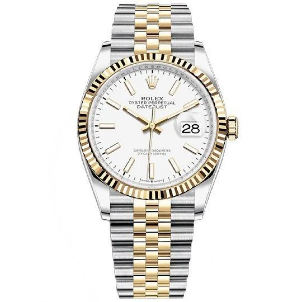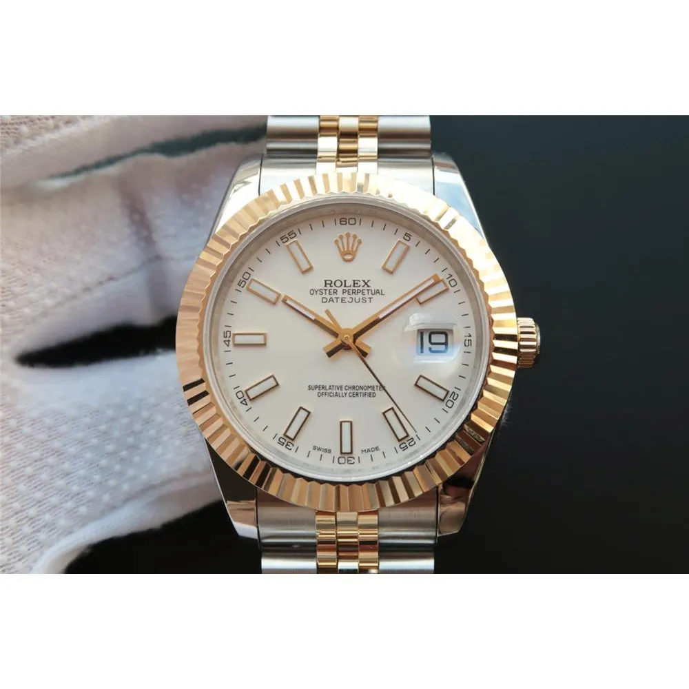 Белый. Часовые риски и полированные стрелки, покрытые люминесцентным составом Super LumiNova С3. Окно даты в отметке на 15.00 часов под увеличительным окном 2,5. Гравировка маркировки Rolex и серийного номера Rolex на внутреннем ранте