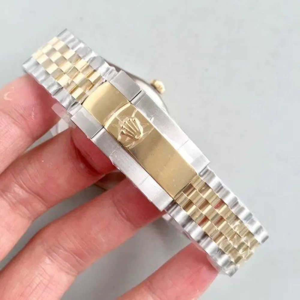 Стальной комбинированный (сталь/золото) браслет Rolex Jubilee, с двойной раскладывающейся застежкой Crownclasp. Либо стальной браслет Rolex Oyster. Серийный номер и маркировка Rolex на конечных звеньях браслета