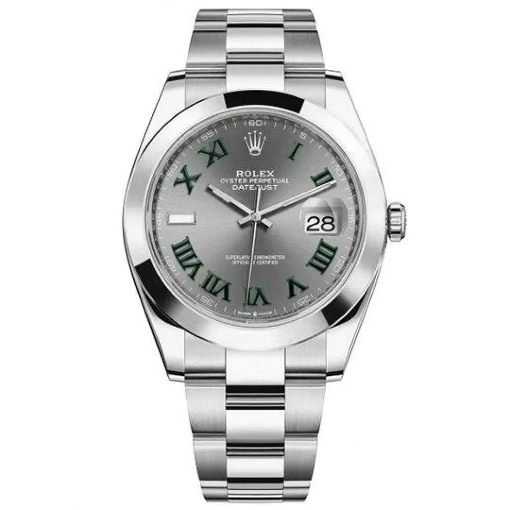 Серый, переливающийся. Арабские часовые индексы и полированные стрелки. Окно даты в отметке на 15.00 часов под увеличительным окном 2,5. Гравировка маркировки Rolex и серийного номера Rolex на внутреннем ранте.