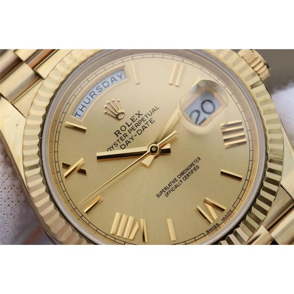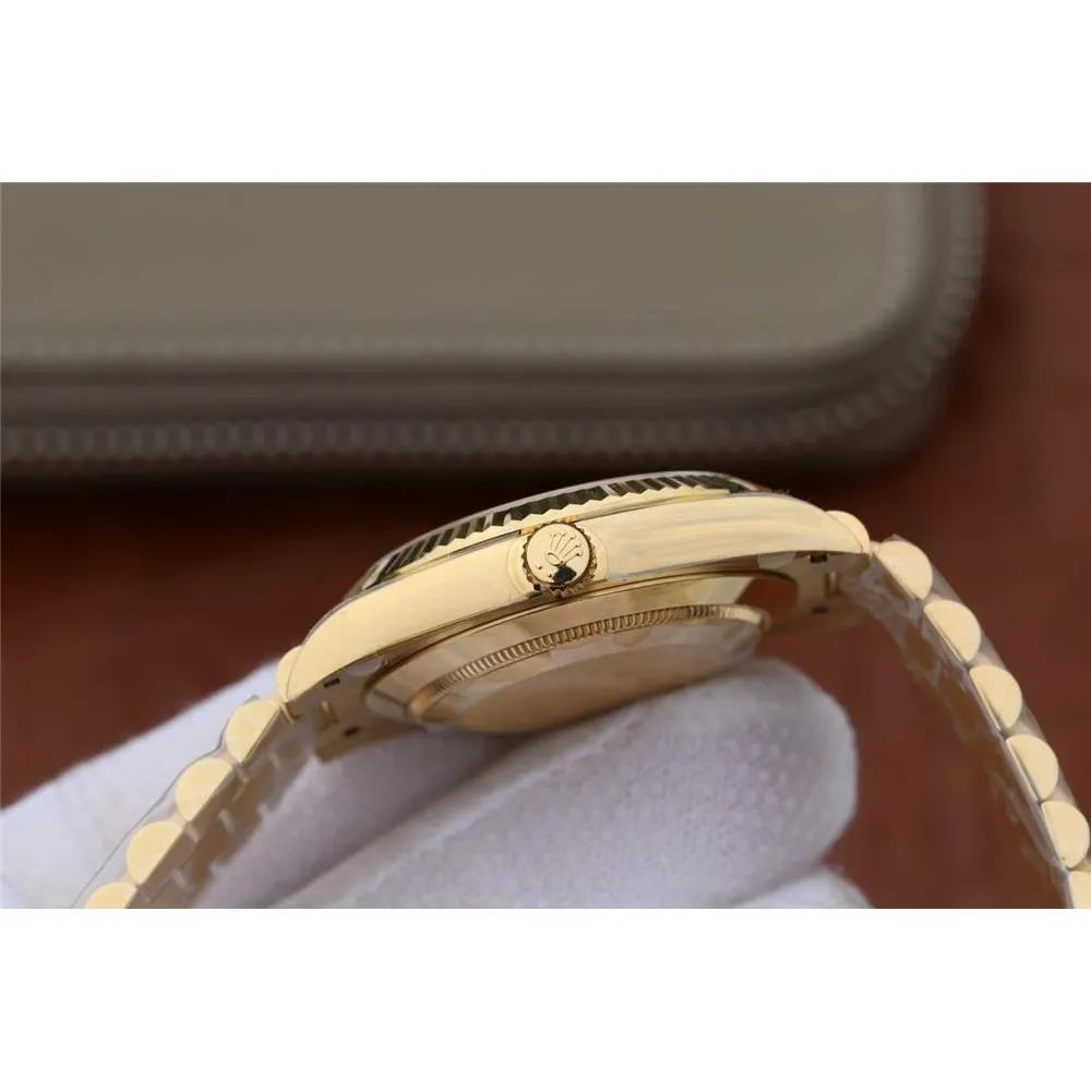 Золотой браслет Rolex President (полукруглые трехрядные звенья), с двойной раскладывающейся застежкой Crownclasp.