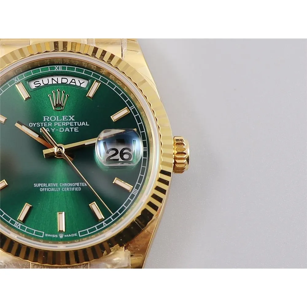 Зеленый, переливающийся. Часовые риски. Окно даты, расположенное в отметке на 15.00 часов, под увеличительным окном 2.5