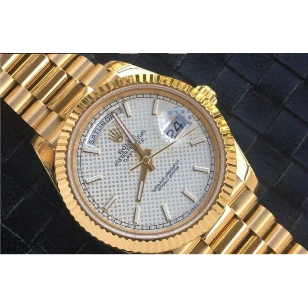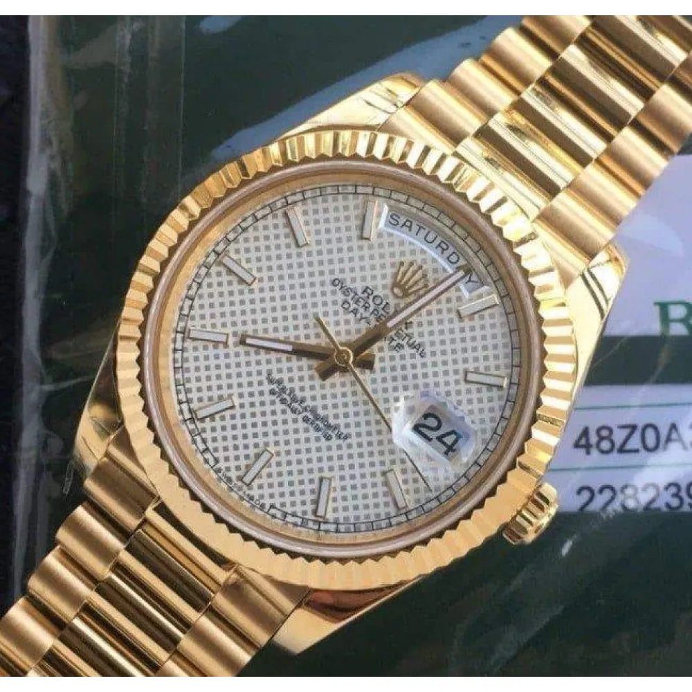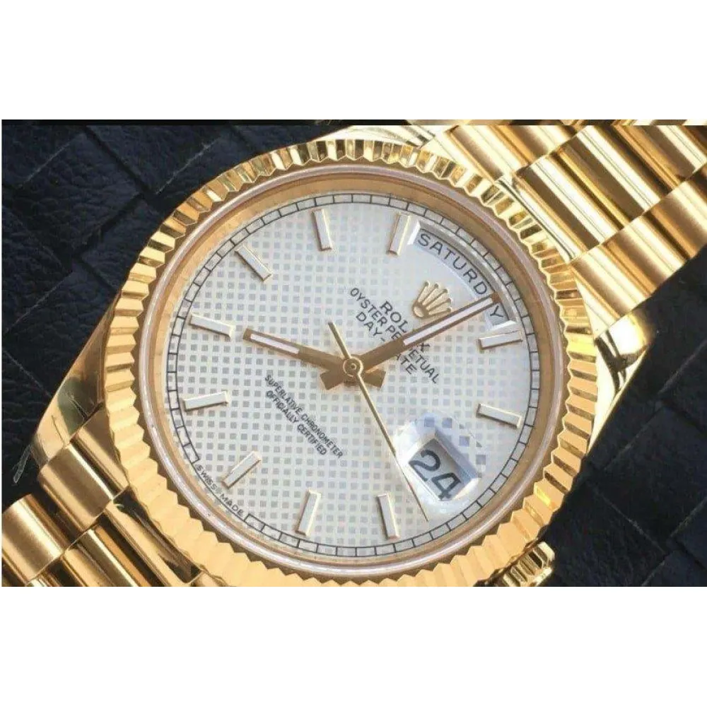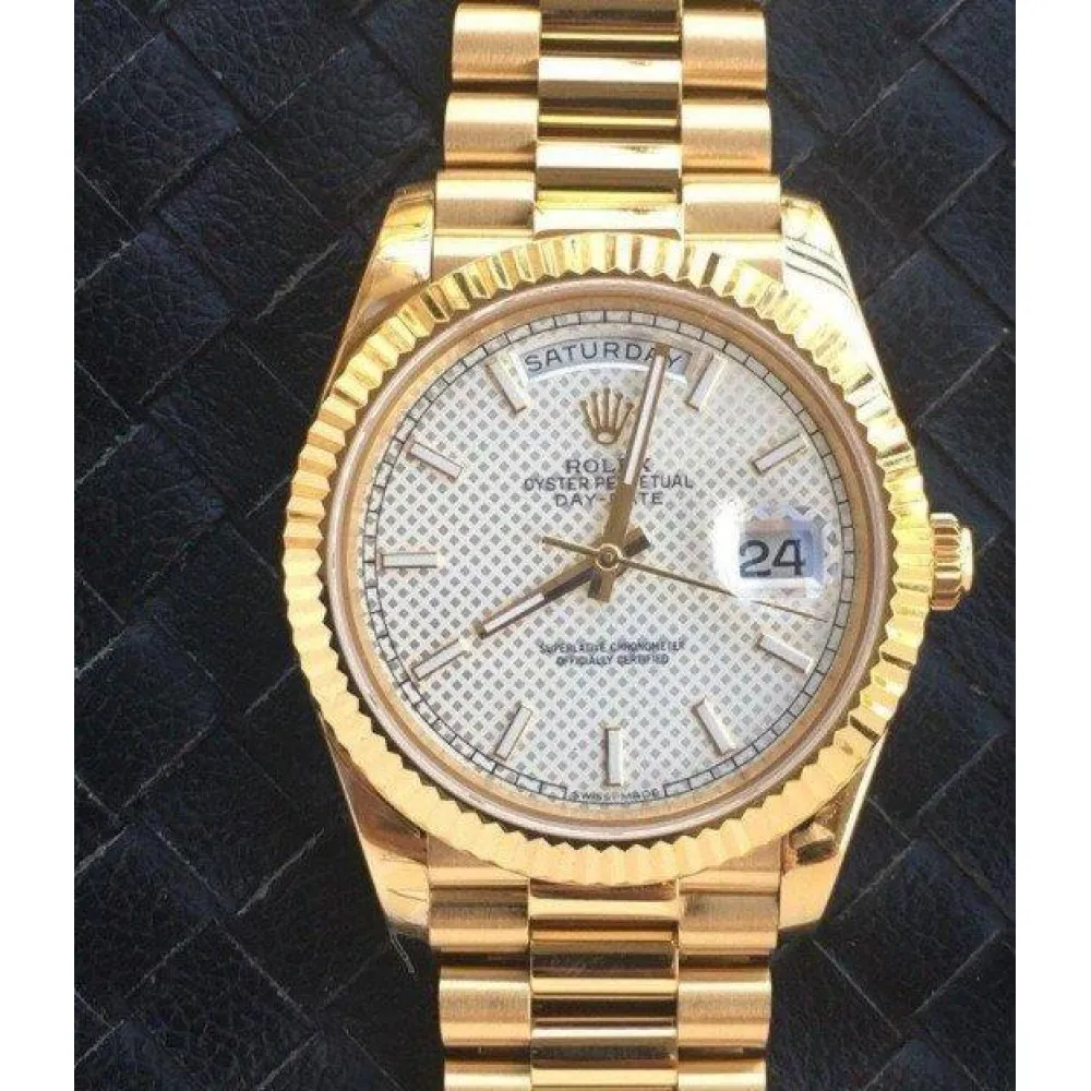 Стальной позолоченный браслет Rolex President (полукруглые трехрядные звенья), с двойной раскладывающейся застежкой Crownclasp