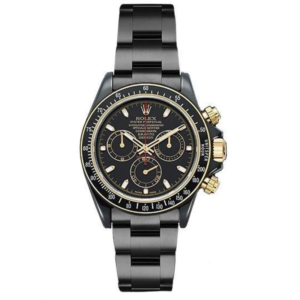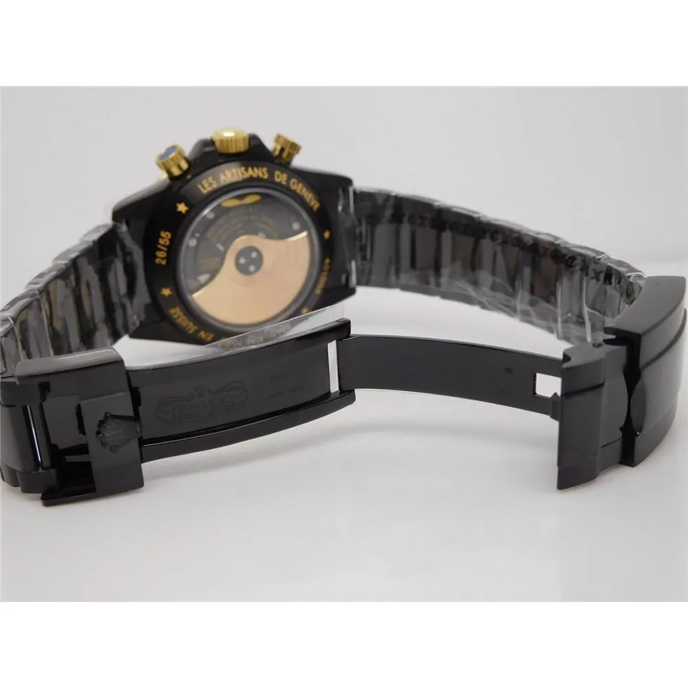 Стальной браслет Rolex Oyster, покрытый черным DLC напылением + черный кожаный ремешок из толстой телячьей кожи с напульсником.