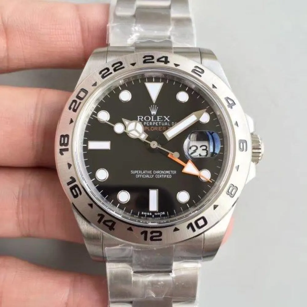 Чёрный (эмаль). Полированные часовые риски и стрелки, покрытые люминесцентным составом Super LumiNova С3. Окно даты в отметке на 15.00 часов под увеличительным окном 2,5. Гравировка маркировки Rolex и серийного номера Rolex на внутреннем ранте.