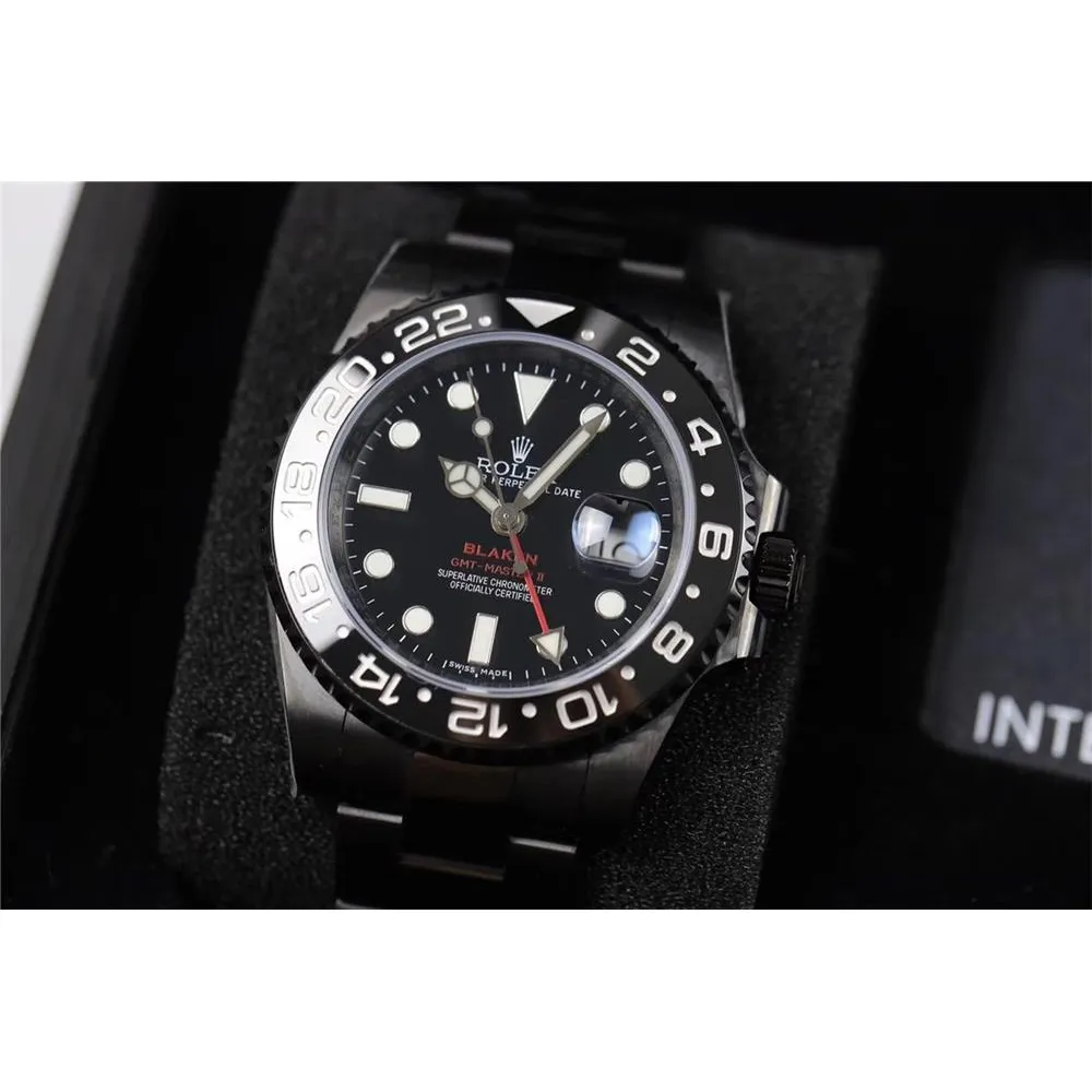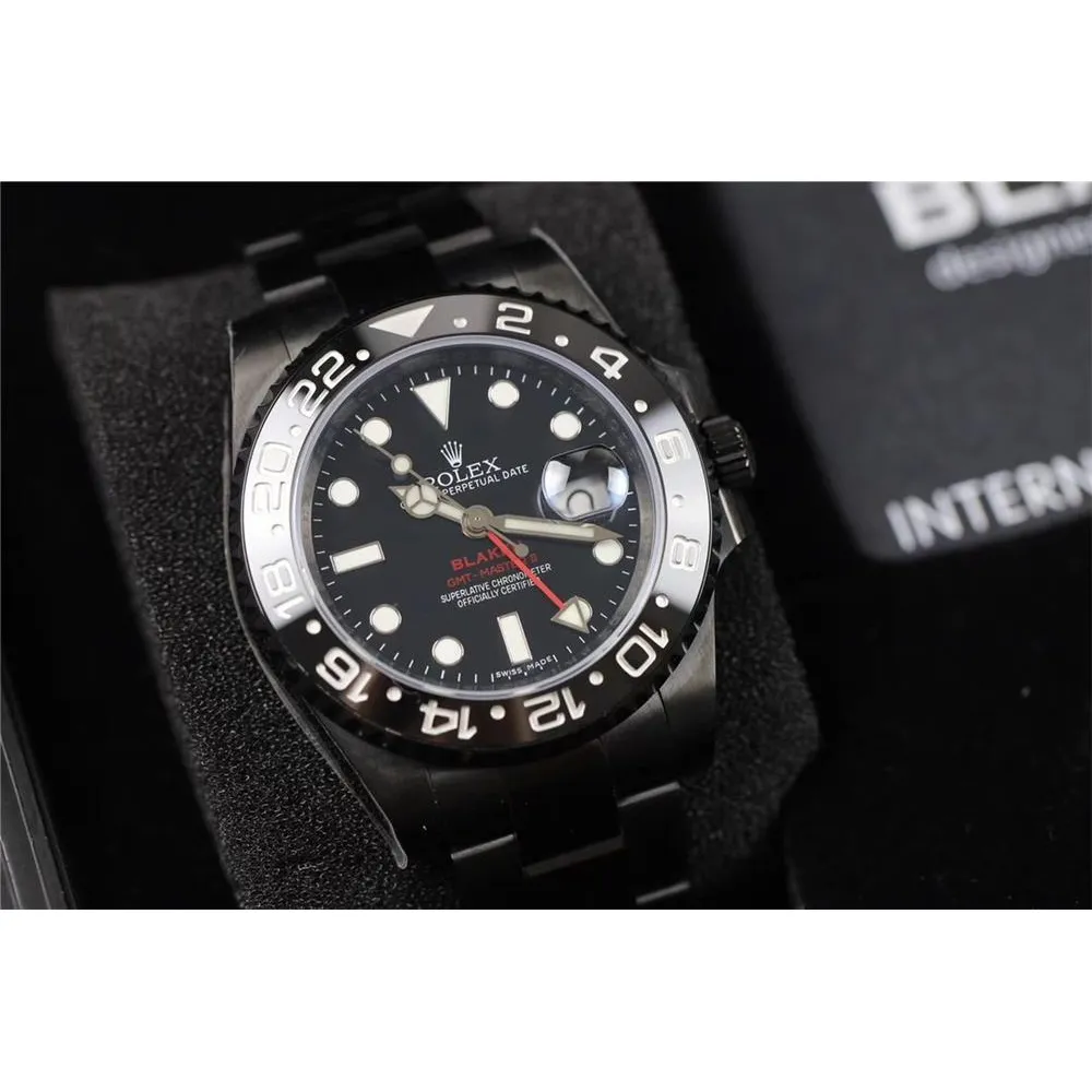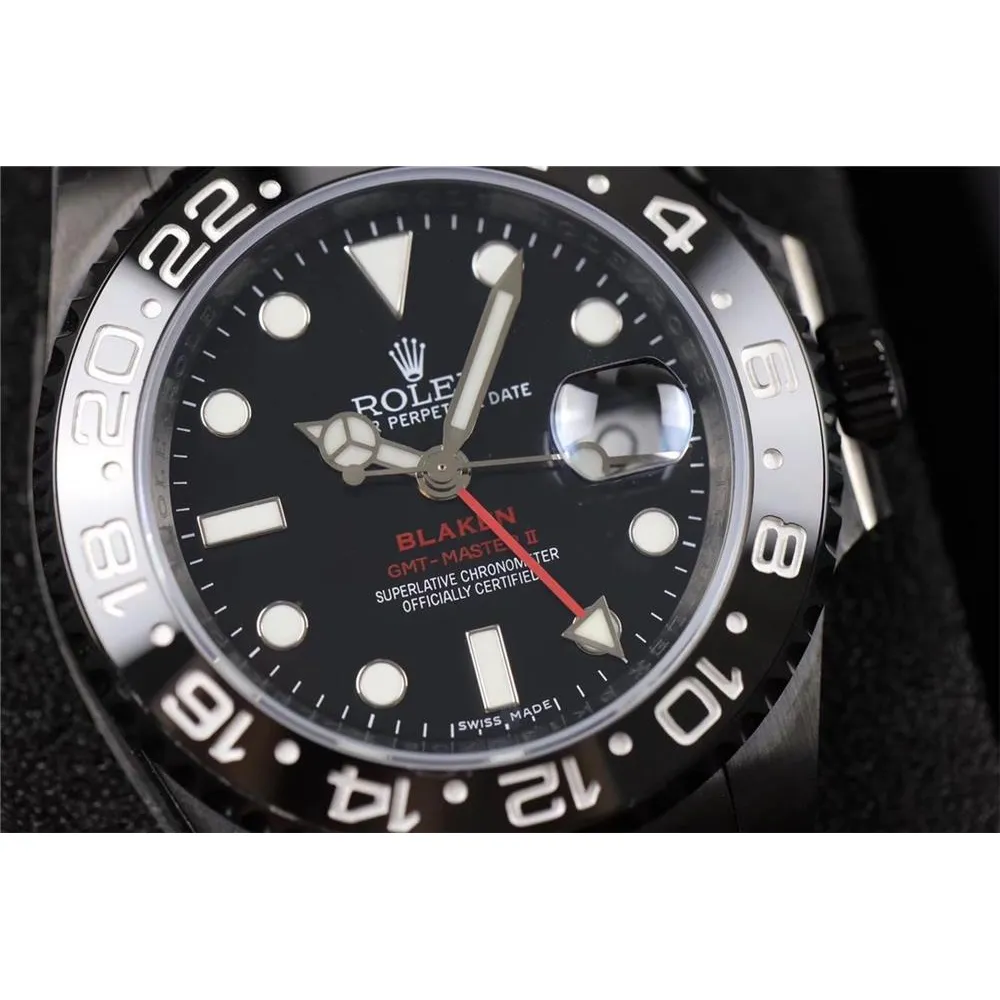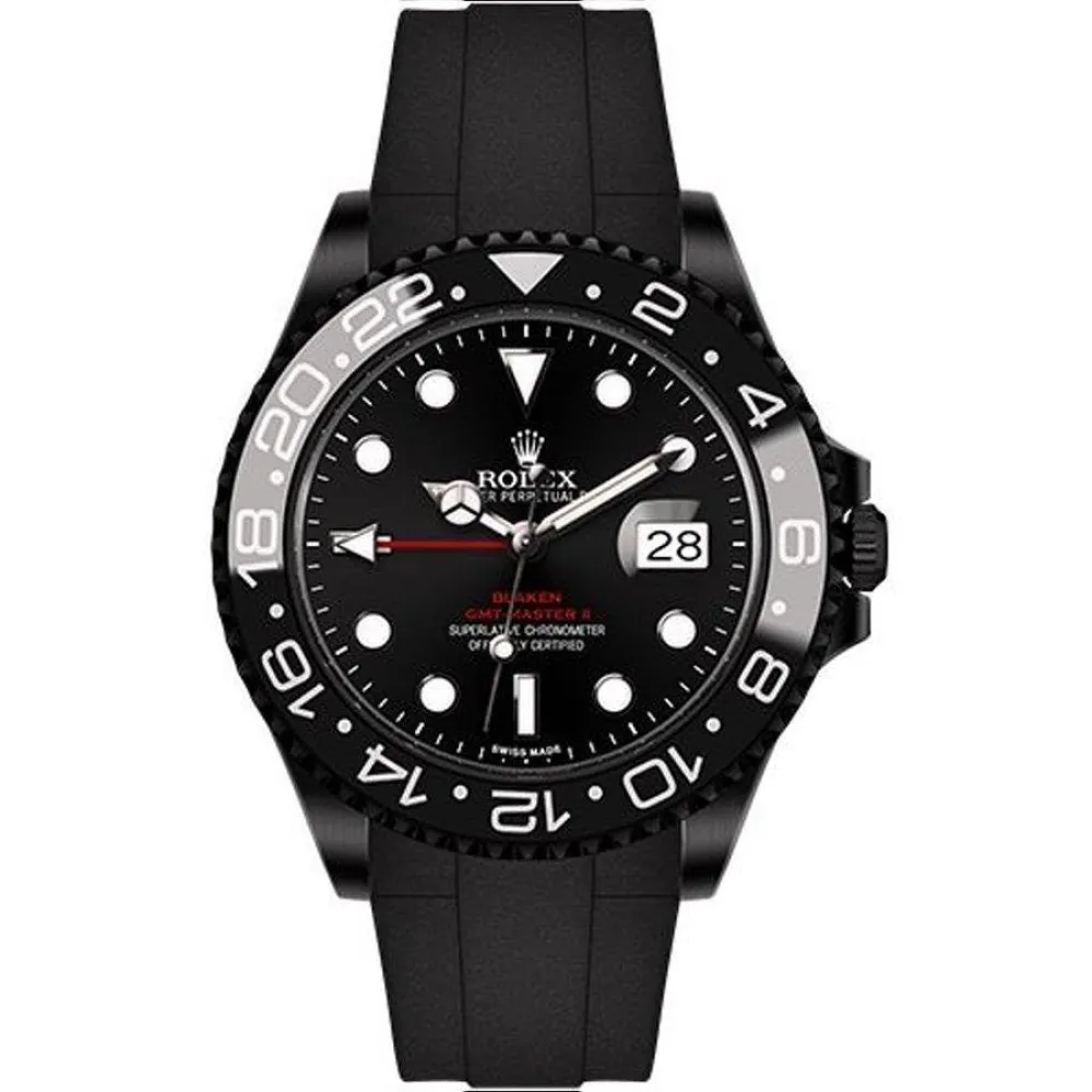 Часы Black PVD Rolex GMT Master II Red Rubber Blaken Version 021123