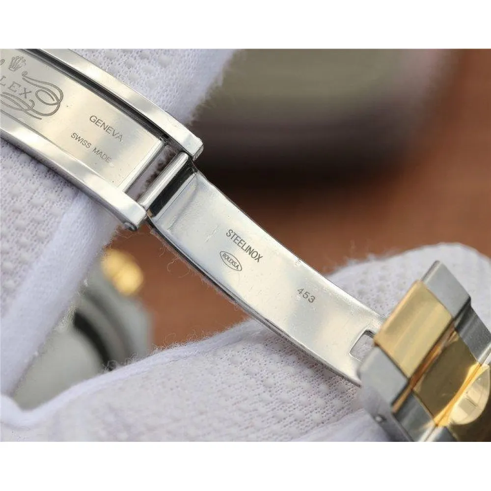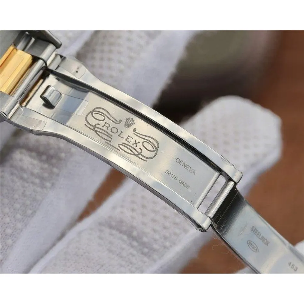 Стальной/Позолоченный браслет Rolex Oyster из сатинированной/полированной стали 904L, с двойной раскладывающейся застёжкой Oysterlock и удлиняющим звеном Glidelock. Серийный номер и маркировка Rolex на конечных звеньях браслета.