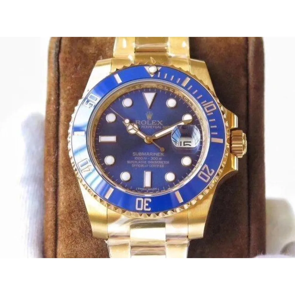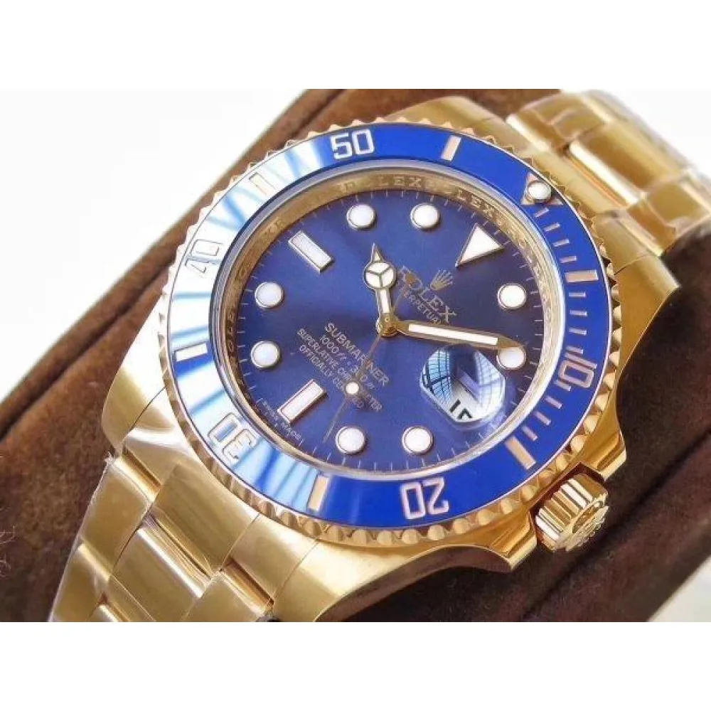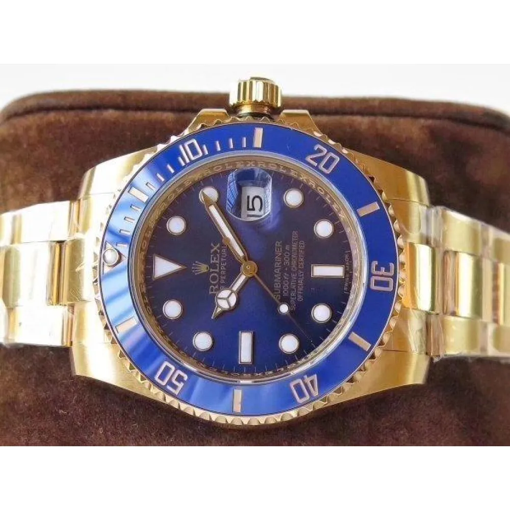 Синий, переливающийся. Позолоченные часовые риски и стрелки, покрытые люминесцентным составом Super LumiNova С3. Окно даты в отметке на 15.00 часов под увеличительным окном 2,5. Гравировка маркировки Rolex и серийного номера Rolex на внутреннем ранте.