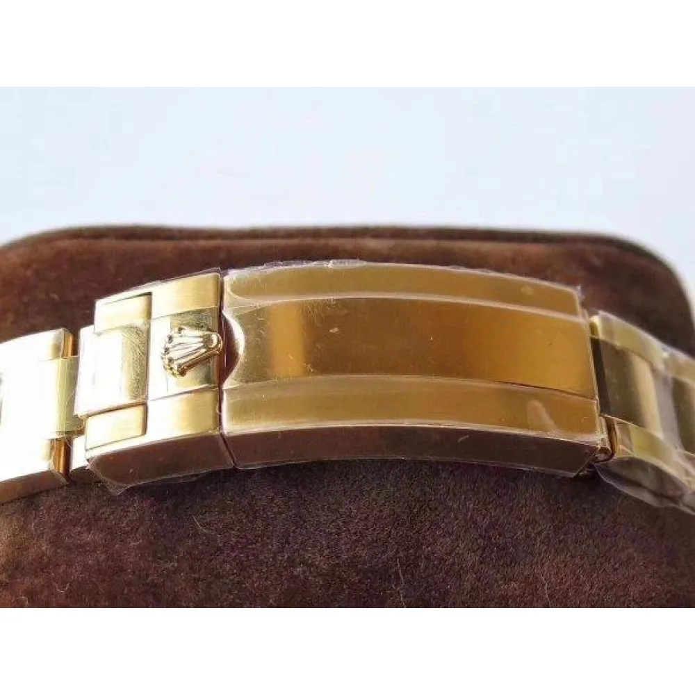 Позолоченный браслет Rolex Oyster, с двойной раскладывающейся застёжкой Oysterlock и удлиняющим звеном. Серийный номер и маркировка Rolex на конечных звеньях браслета.