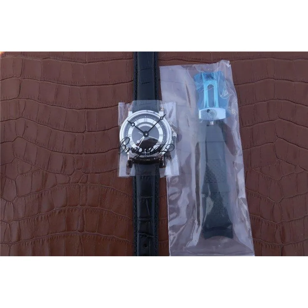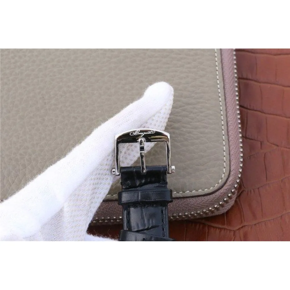 Чёрный кожаный ремешок из телячьей кожи, с двойной раскладывающейся Breguet + чёрный каучуковый ремешок Breguet Marine