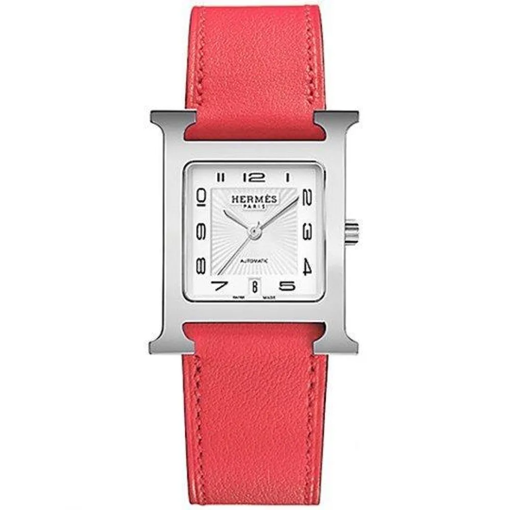 Красный кожаный ремешок из телячьей кожи, с простым (с помощью шипа) замком Hermes.