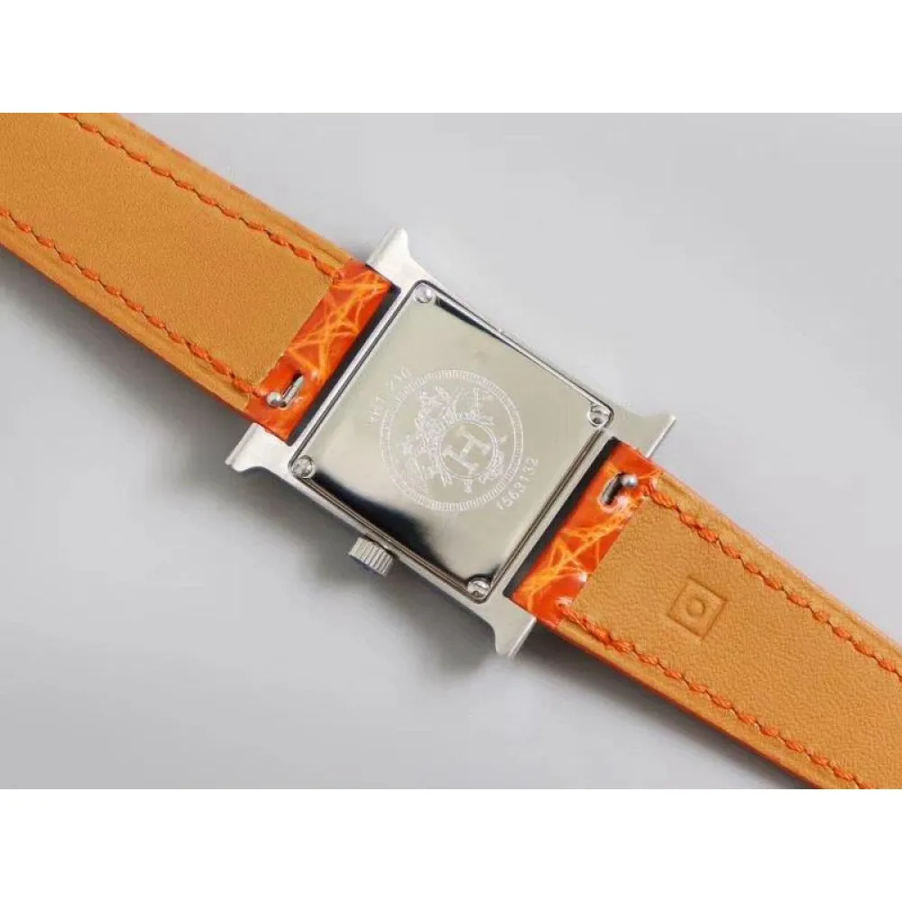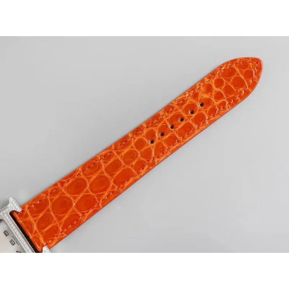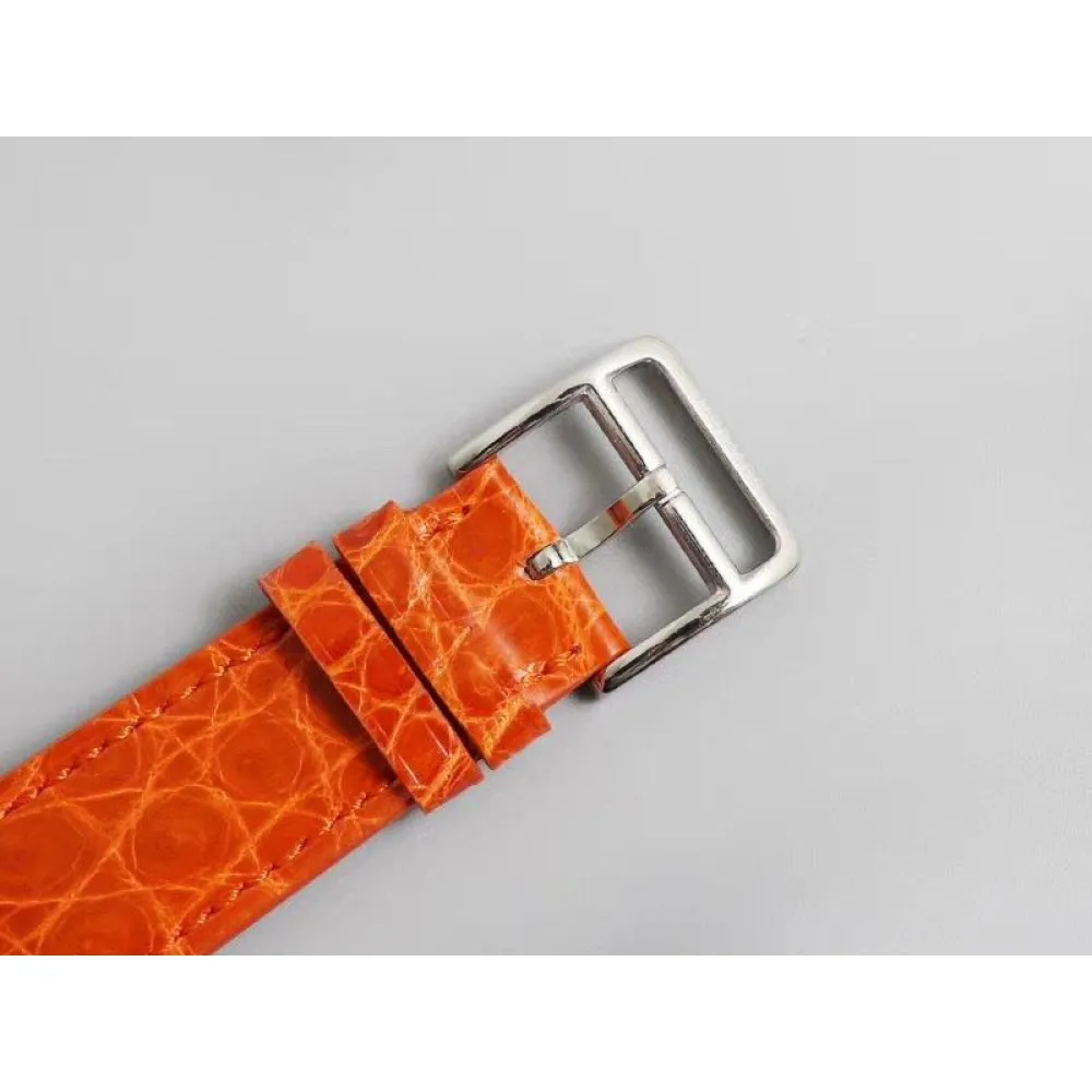 Оранжевый кожаный ремешок из телячьей кожи, с простым (с помощью шипа) замком Hermes.