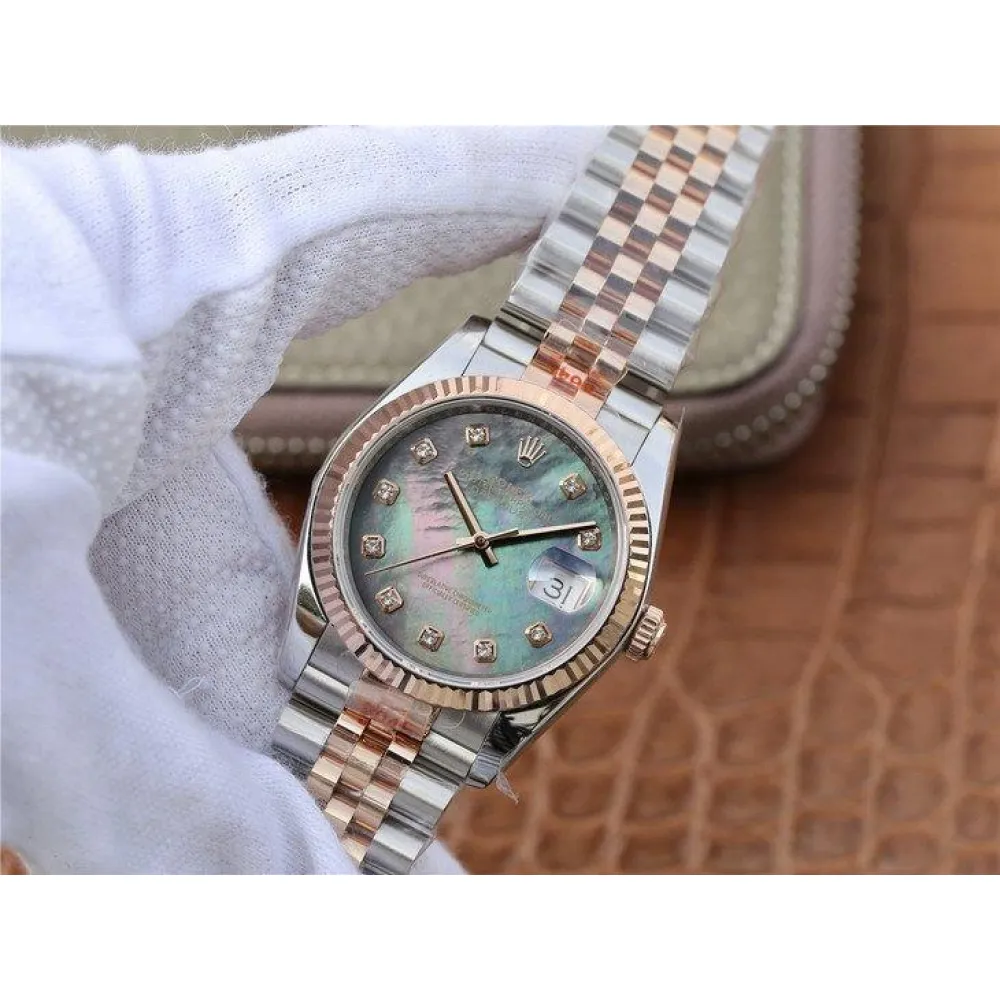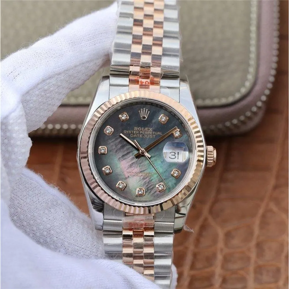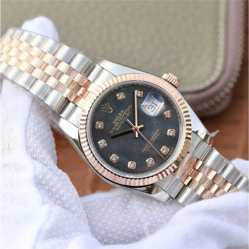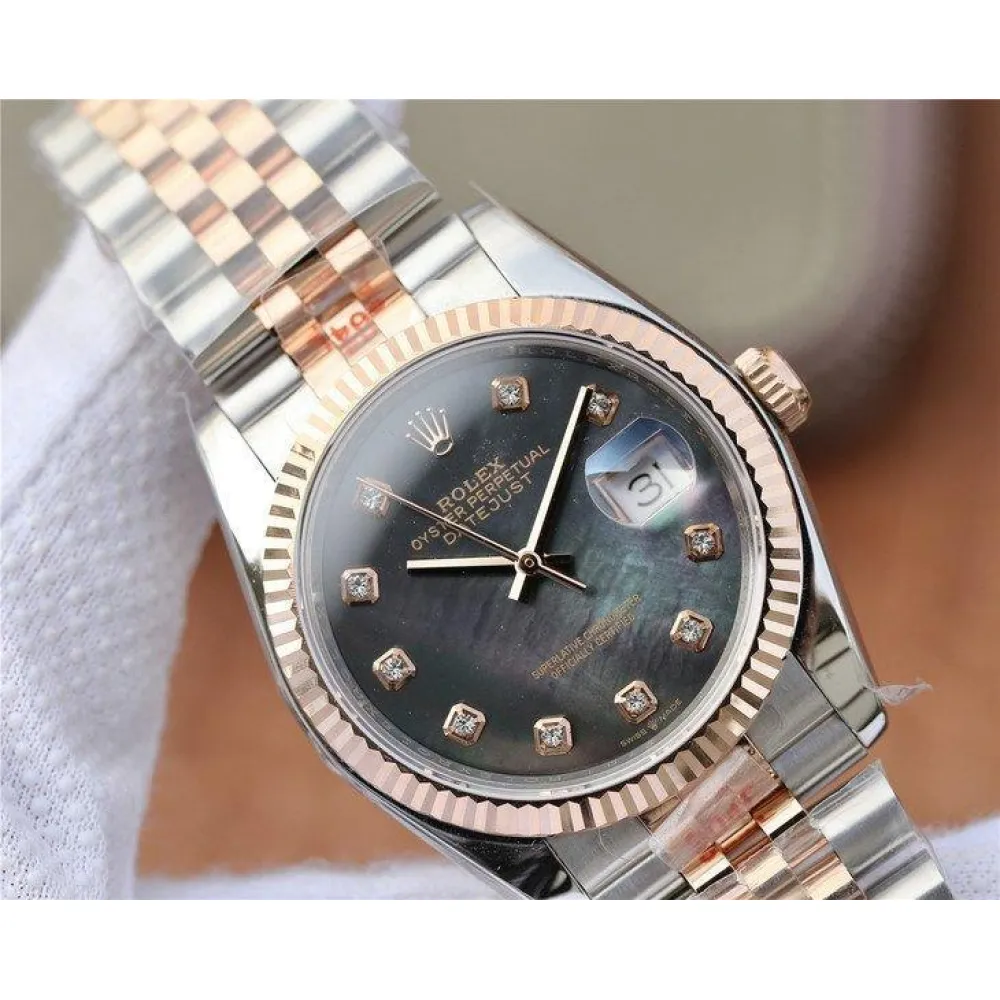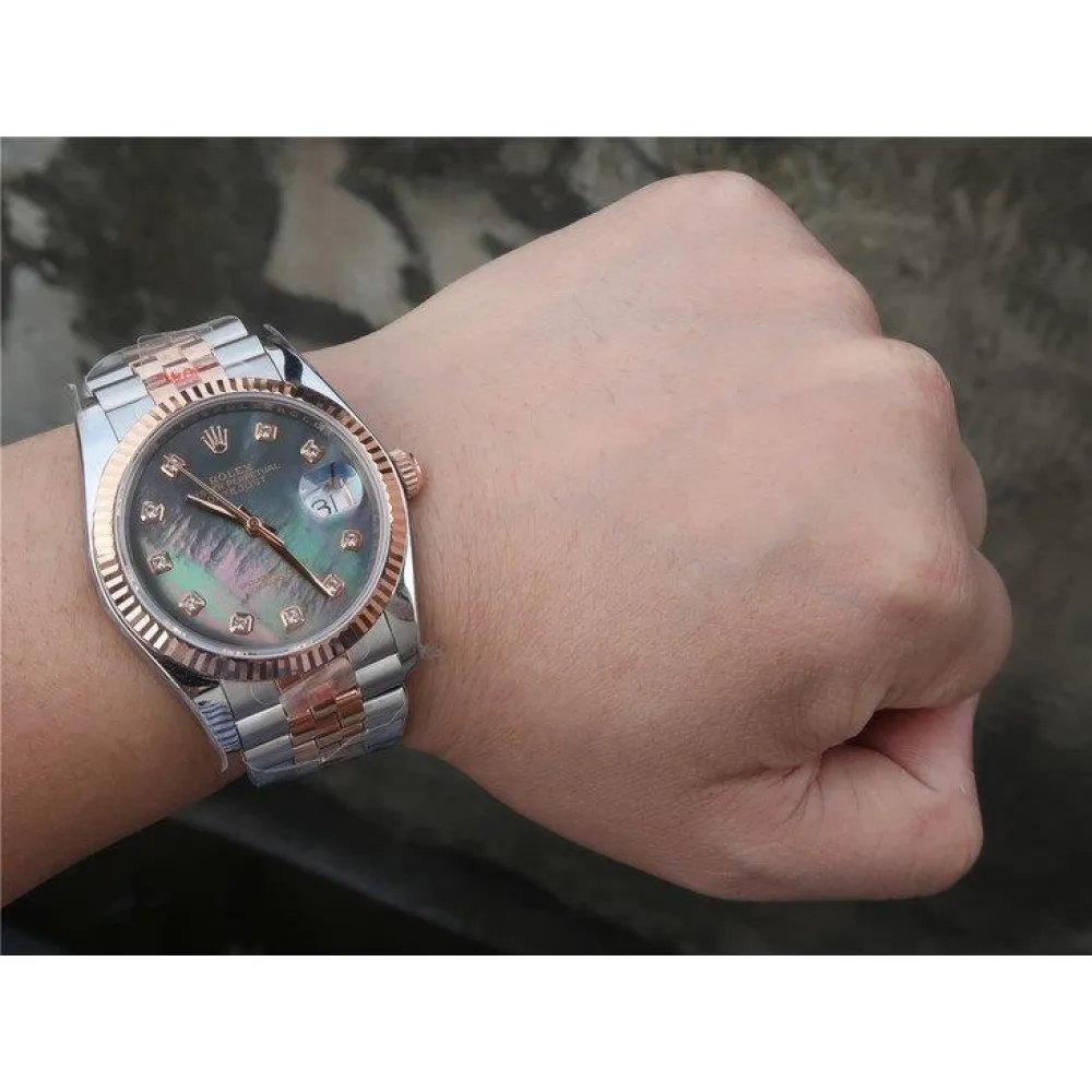 Oyster, Полированная сталь 904L, частично покрытая жёлтым золотом методом PVD.