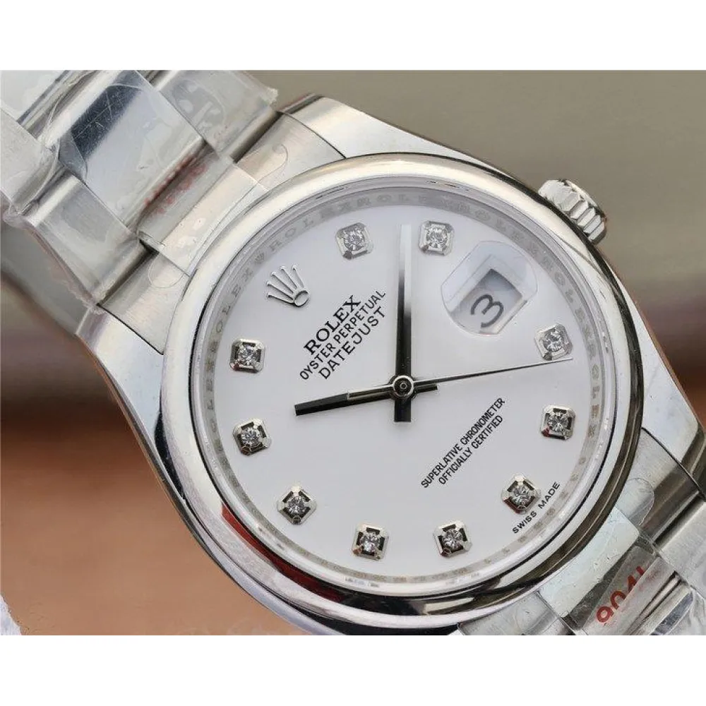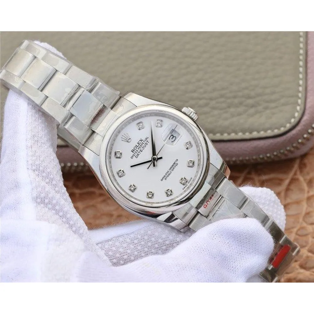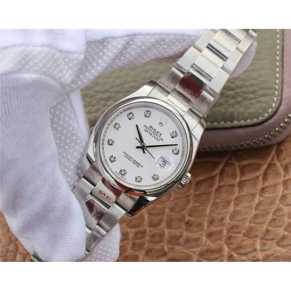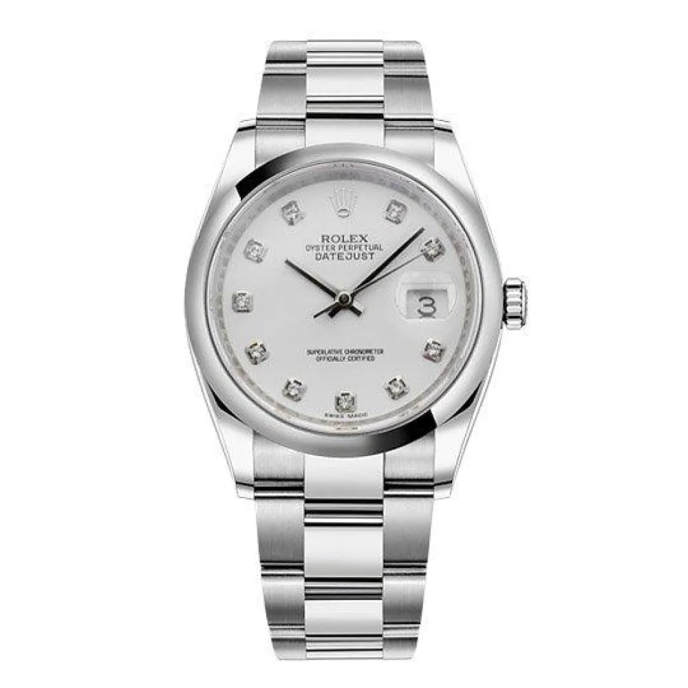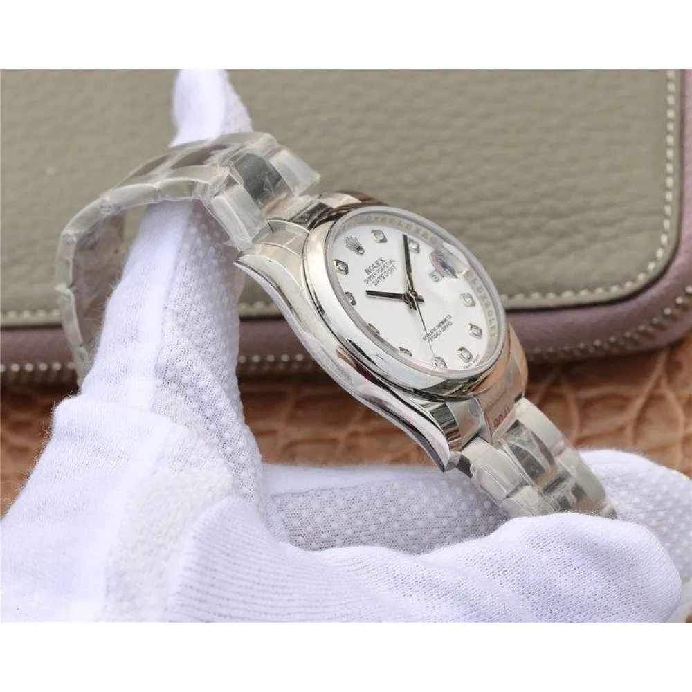 Перламутровый, переливающийся (Mother of Pearl). Полированные часовые риски, инкрустированные белыми сапфирами. Окно даты, расположенное в отметке на 15.00 часов, под увеличительным окном 2.5.