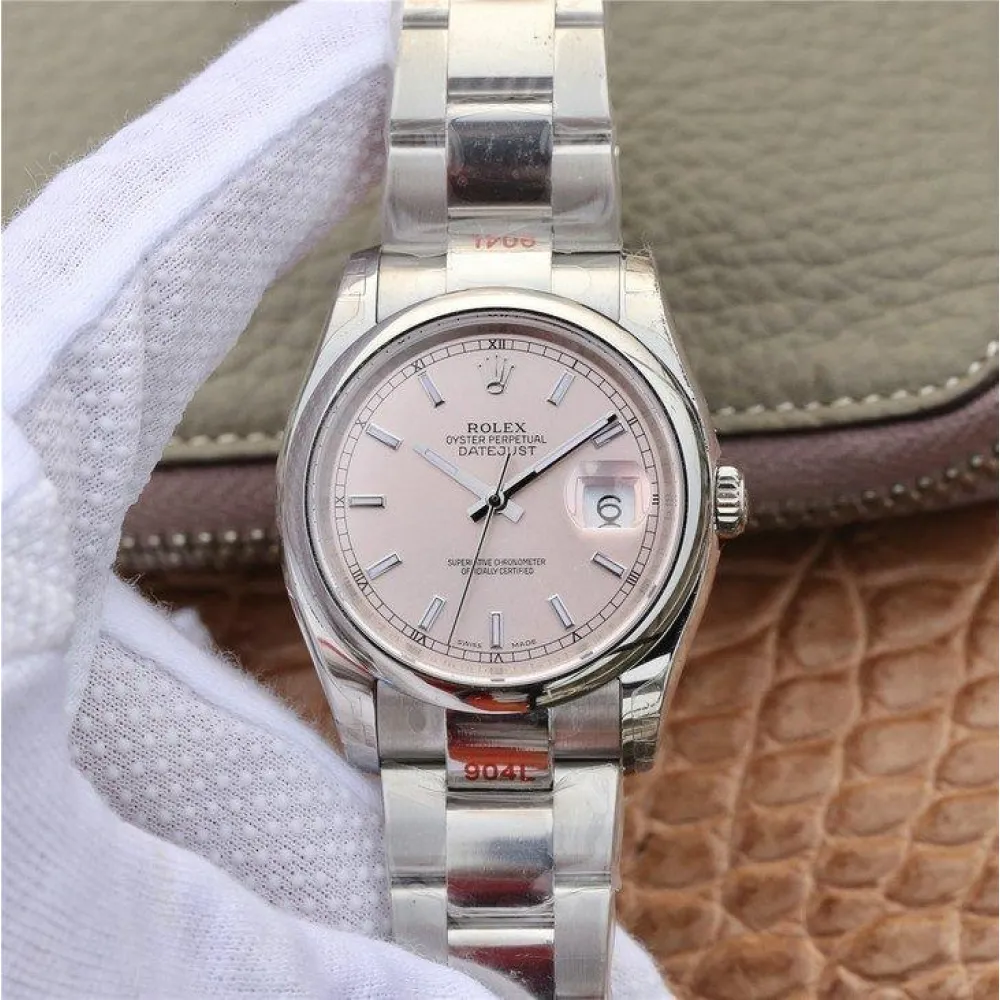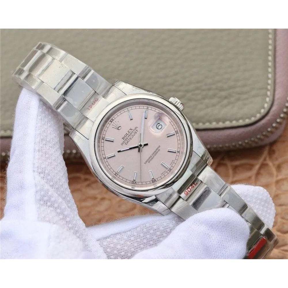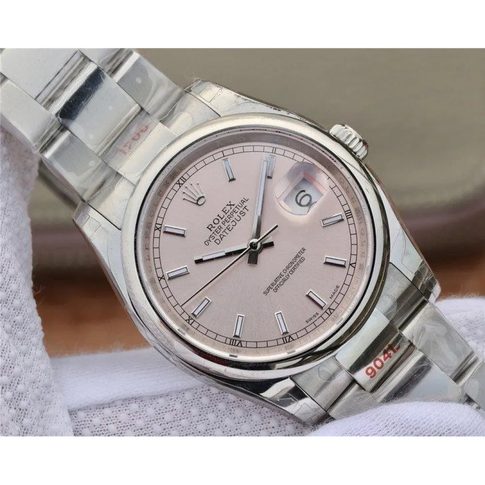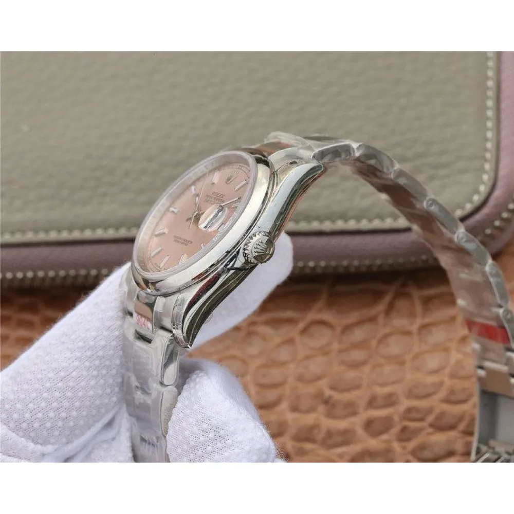 Фиксированный в одном положении, стальной полированный выпуклый безель; Гравировка маркировки Rolex (3 короны Rolex) с внутренней стороны безеля.