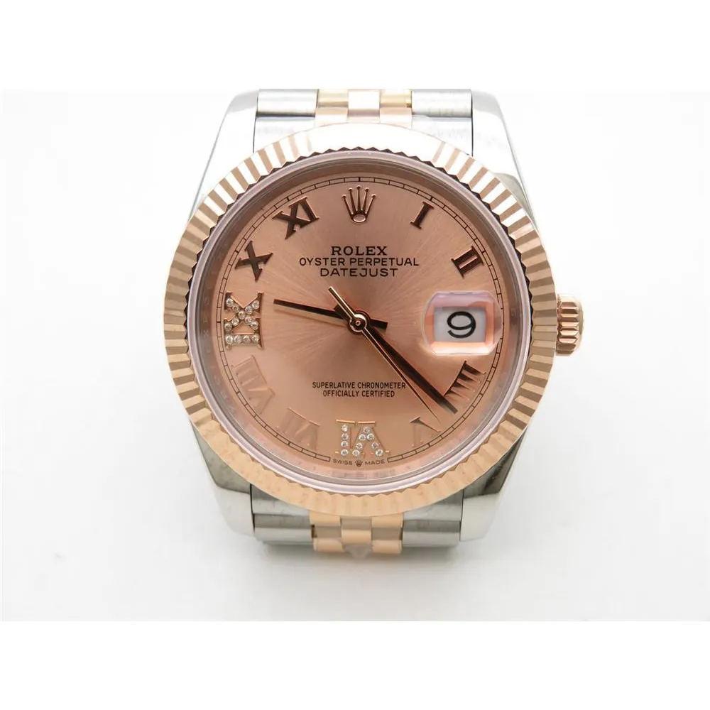 Позолоченный, переливающийся. Позолоченные, полированные римские часовые индексы и стрелки. Окно даты, расположенное в отметке на 15.00 часов под увеличительным окном 2,5. Гравировка маркировки Rolex и серийного номера Rolex на внутреннем ранте.