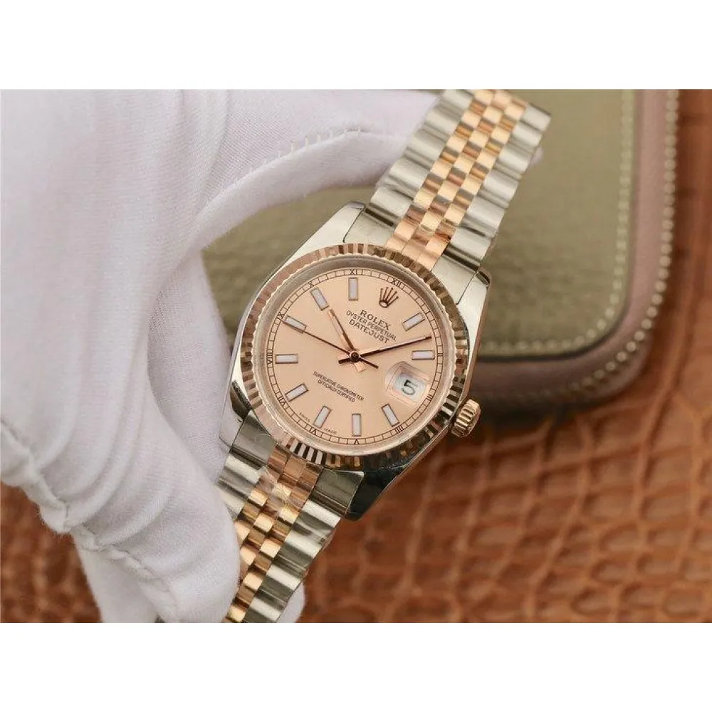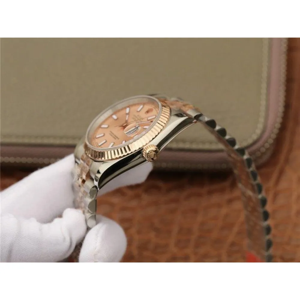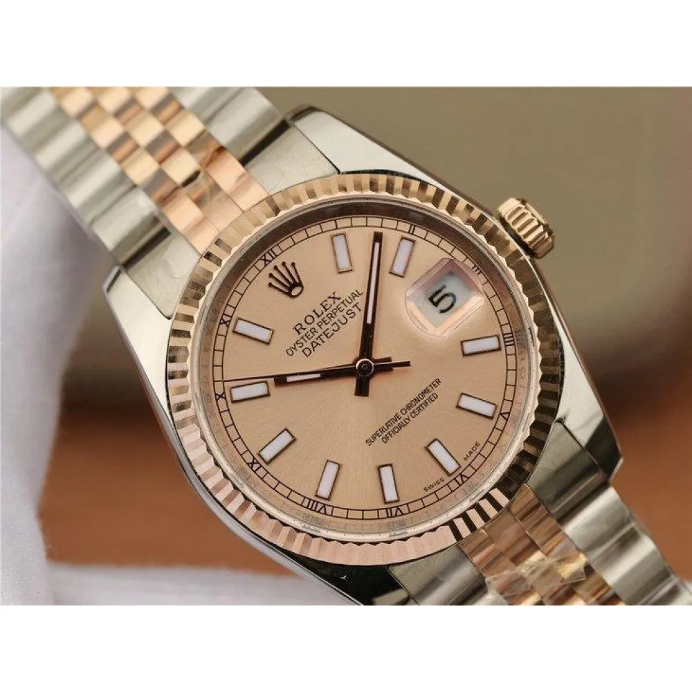 Oyster, Полированная сталь 904L, частично покрытая розовым золотом методом PVD.