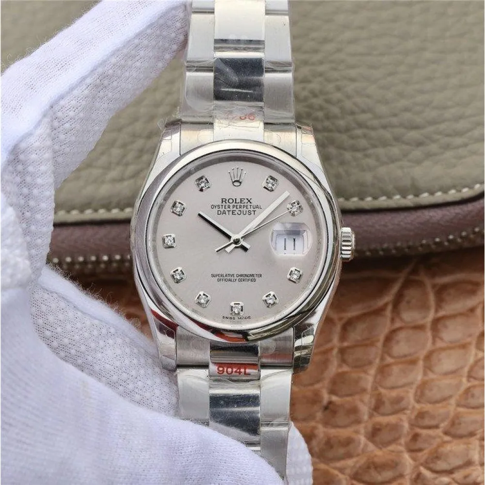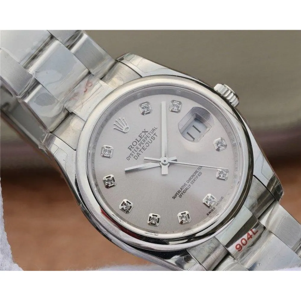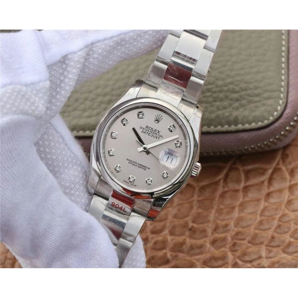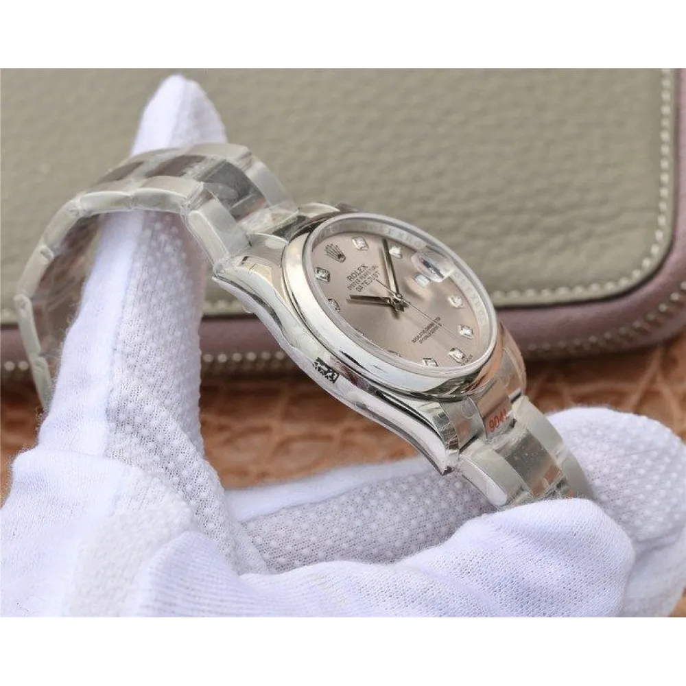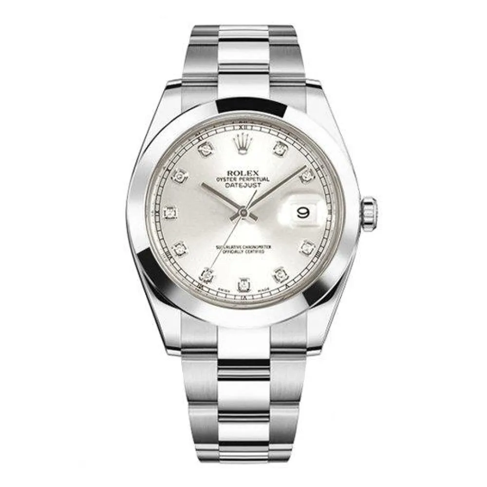 Белый. Часовые риски, инкрустированные белыми сапфирами. Окно даты в отметке на 15.00 часов под увеличительным окном 2,5. Гравировка маркировки Rolex и серийного номера на внутреннем ранте.