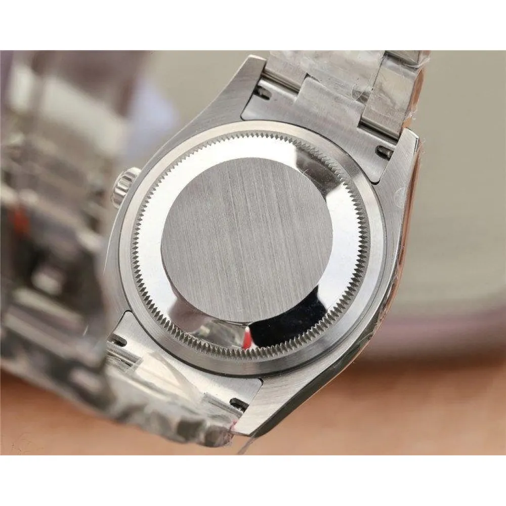 Фиксированный в одном положении, стальной полированный безель; Гравировка маркировки Rolex (3 короны Rolex) с внутренней стороны безеля.