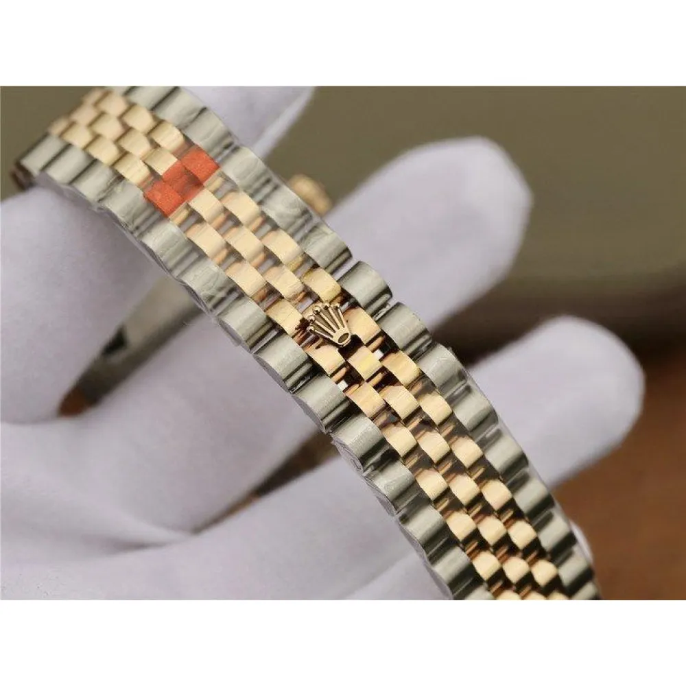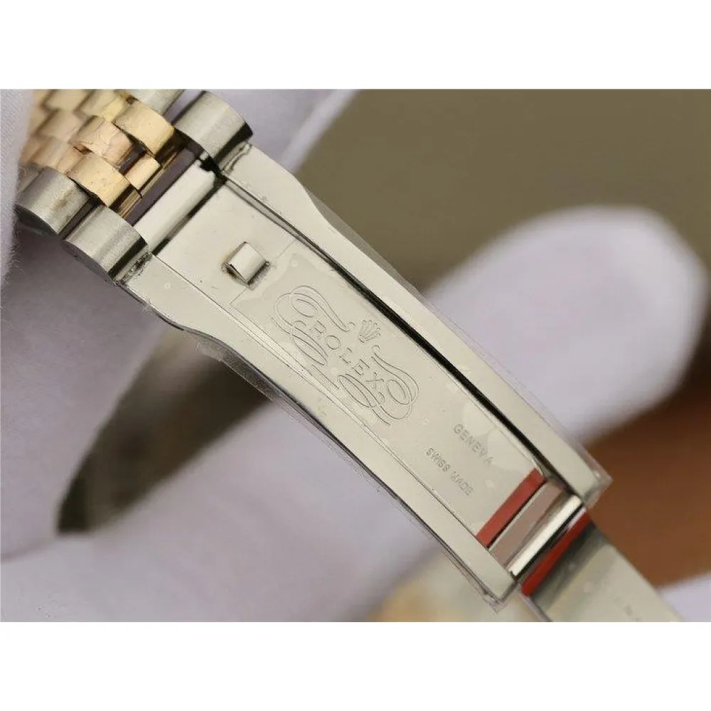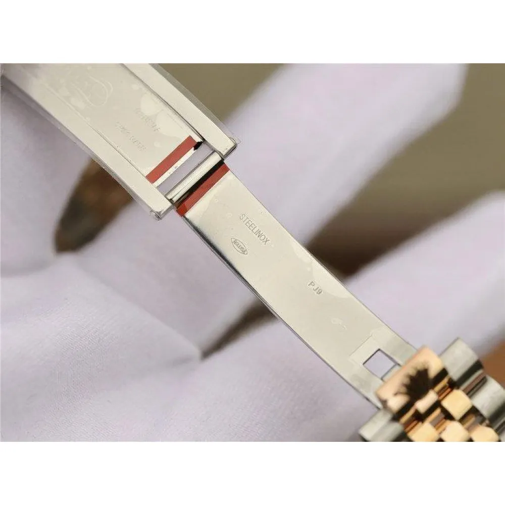 Комбинированный (сталь/золото) браслет Rolex Jubilee из стали марки 904L, с двойной раскладывающейся застёжкой Oysterclasp. Либо стальной браслет Rolex Oyster. Серийный номер и маркировка Rolex на конечных звеньях браслета и между дужками корпуса.