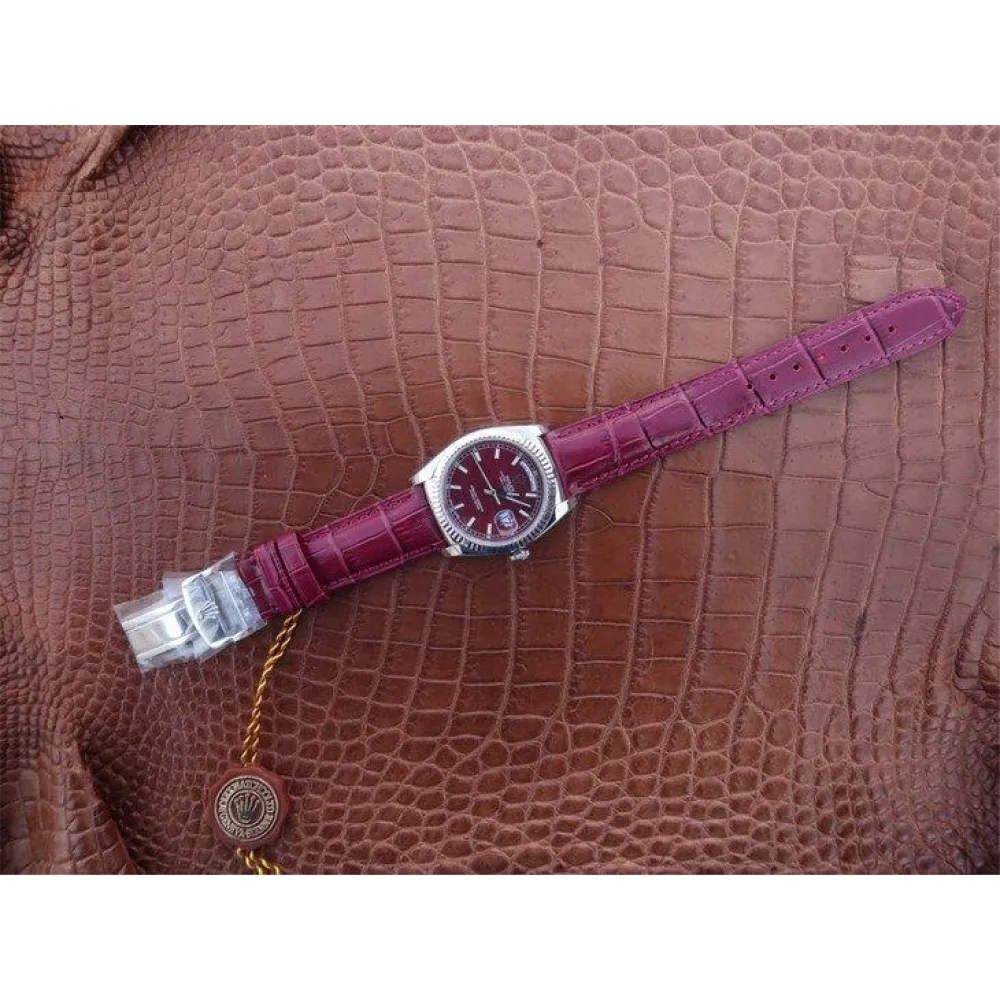 Красный (гранатовый) кожаный ремешок, с двойной раскладывающейся стальной застежкой Crownclasp.