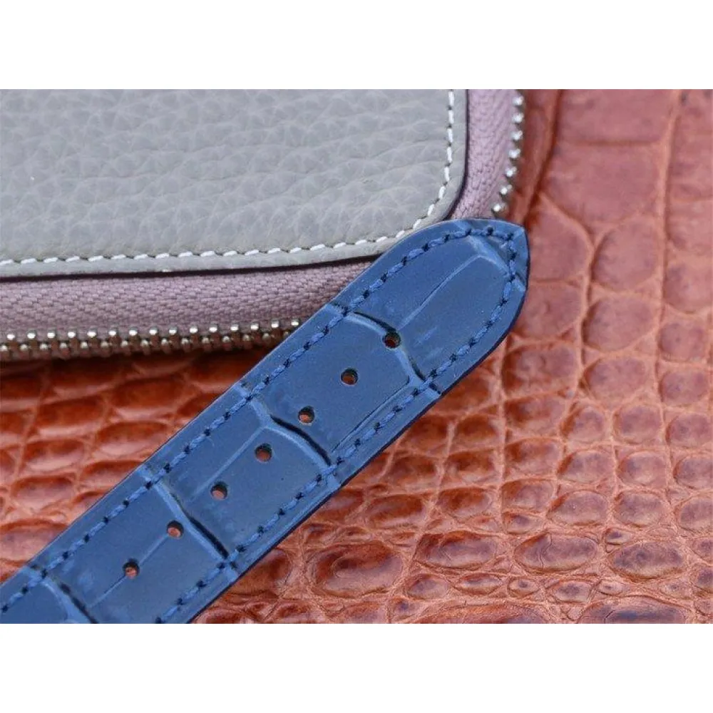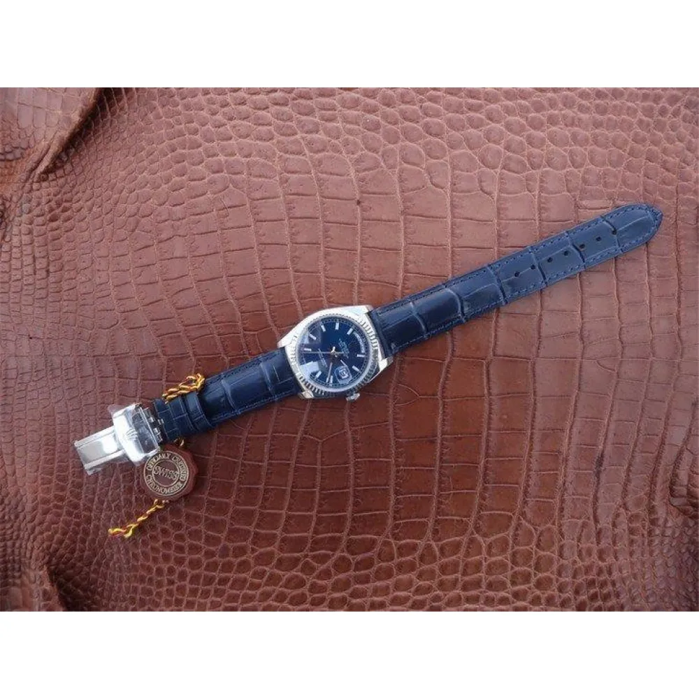 Синий кожаный ремешок, с двойной раскладывающейся стальной застежкой Crownclasp.